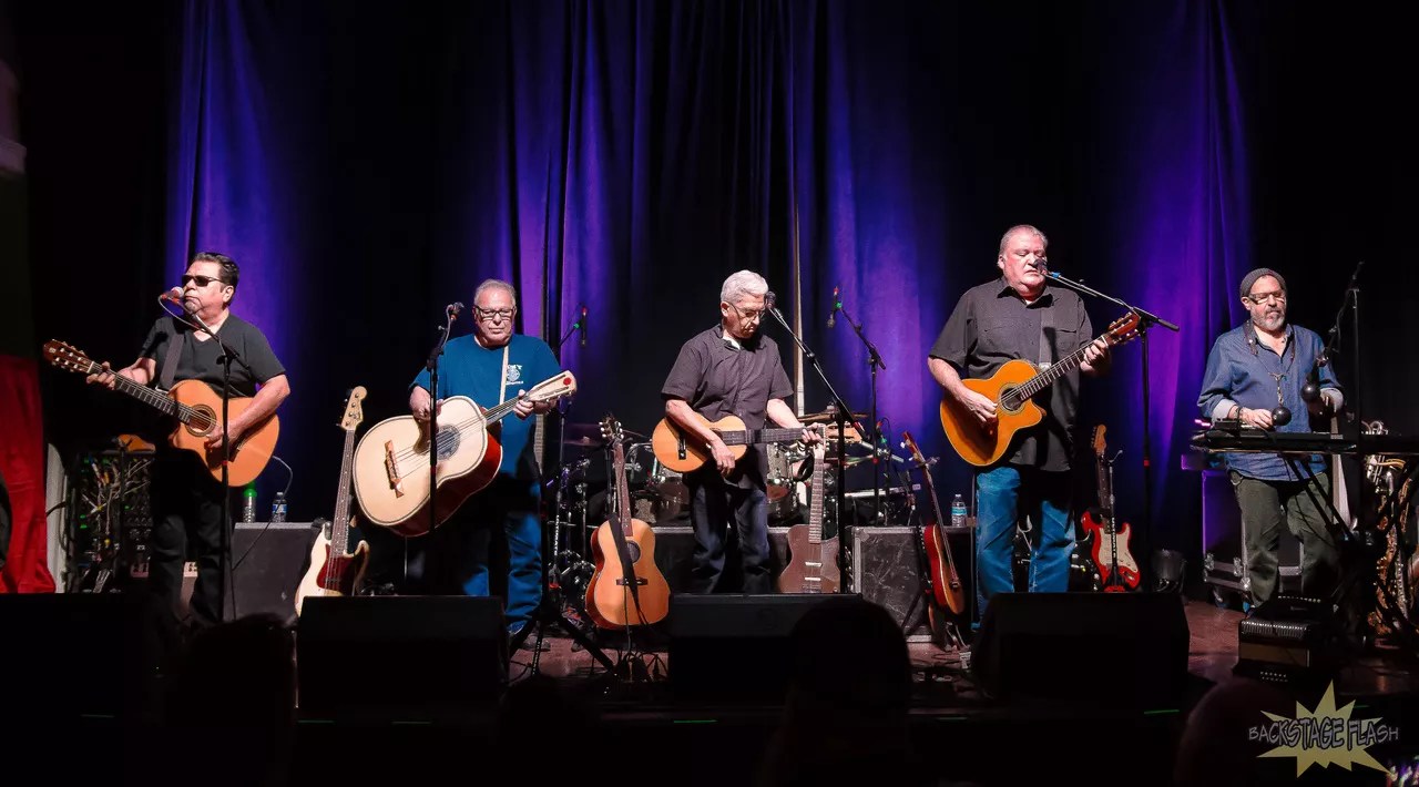 Around 8:30 p.m., the four O.G. members of Los Lobos – who started making music together as teenagers 45 years ago – entered the Stanley’s concert hall and mesmerized the seated audience with an hour in which each musician took turns singing lead. “We’re going back to our roots tonight with some Mexican folk music,” the sun-glassed Cesar Rosas told the crowd – really the only time during the opening acoustic set that Los Lobos, with the pace of a Ramones show, took a breath between songs.