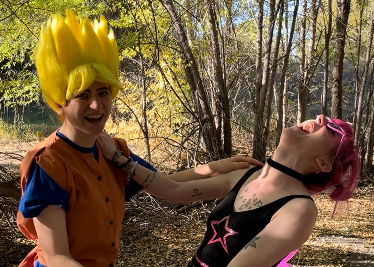 Marie Hicks and Dani Engländer shoot a music video for “fortnite slow dance.”