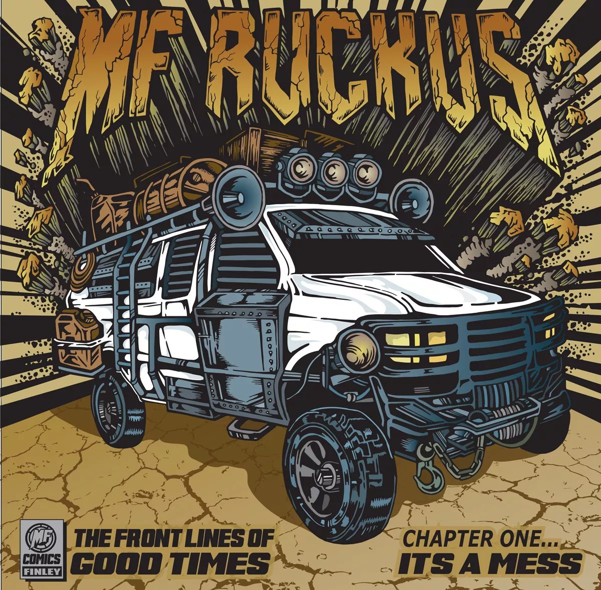 Denver-based hard-rock band MF Ruckus is about to release part one of The Front Lines of Good Times, a twelve-part sci-fi graphic novel and album. Working with comic artist and illustrator Josh Finley, vocalist Aaron Howell wrote the story about a plucky band of musicians and adventurers, who come to be known as MF Ruckus, struggling to survive in a futuristic setting, dogged by the repressive forces of the New Order of Fundamentalist Utilitarian Nationalists (NOFUN for short).