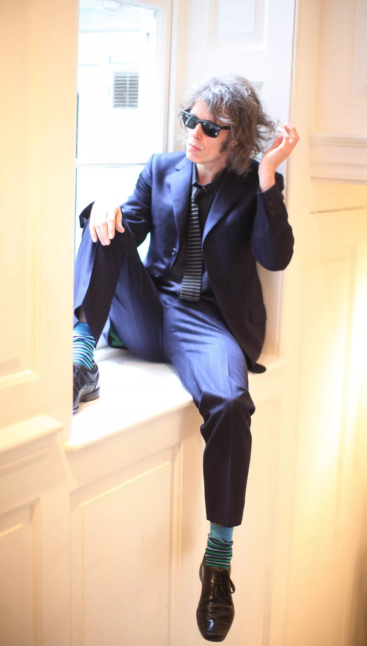 “I have this blue suit with a faint, pale blue stripe running through it. It was designed by the famous John Pearse, who had a shop in London called Granny Takes a Trip. He used to make all the clothes for the Beatles and the Stones. He’s a Savile Row-trained tailor, so the cut of his clothes is fabulous.”
