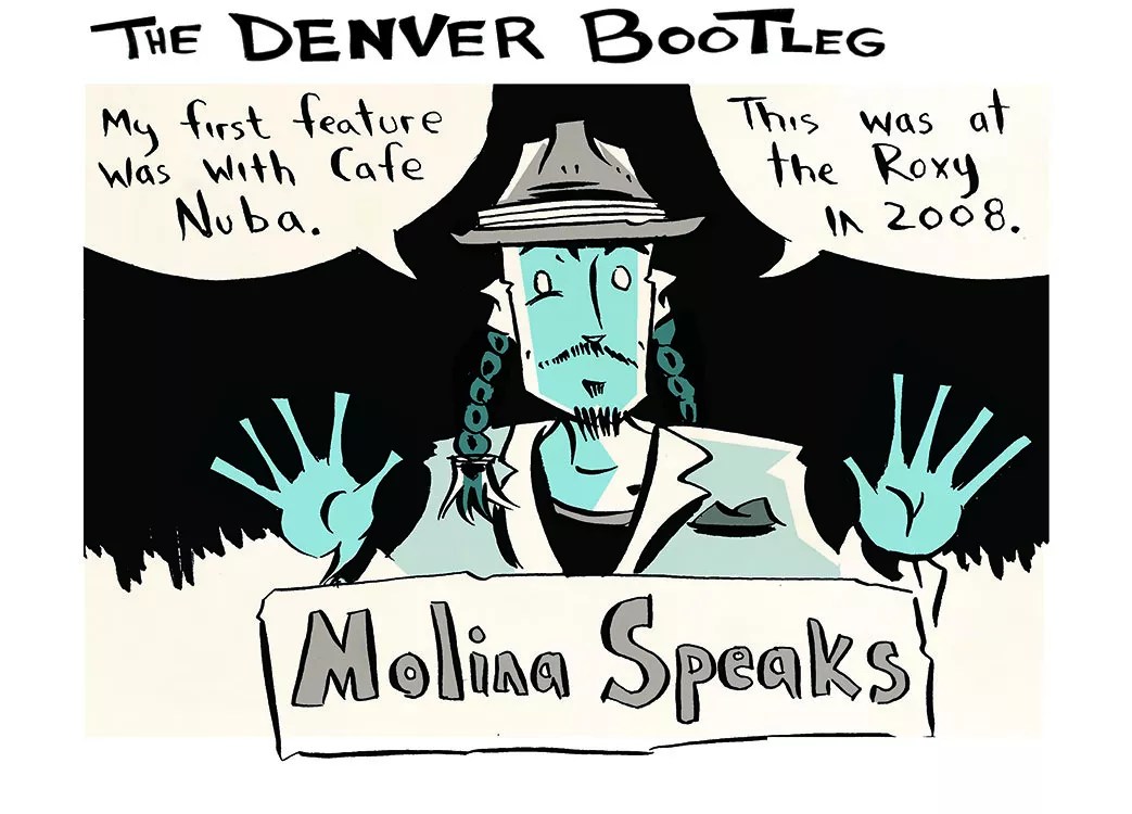 “It was historic to be performing on Welton Street, in Five Points, on stage with some of my Denver heroes. Rapping over basic-ass beats and doing my spoken word, I caught the buzz looking out at the crowd. These people would become friends and collaborators! I was like, ‘This is tha shit! THIS IS IT!!’… and ten years later it still feels that way. Thank you, Ashara, for giving this Chicano a shot (and some time) in your Black and Beautiful space. One love, Cafe Nuba, por vida!”