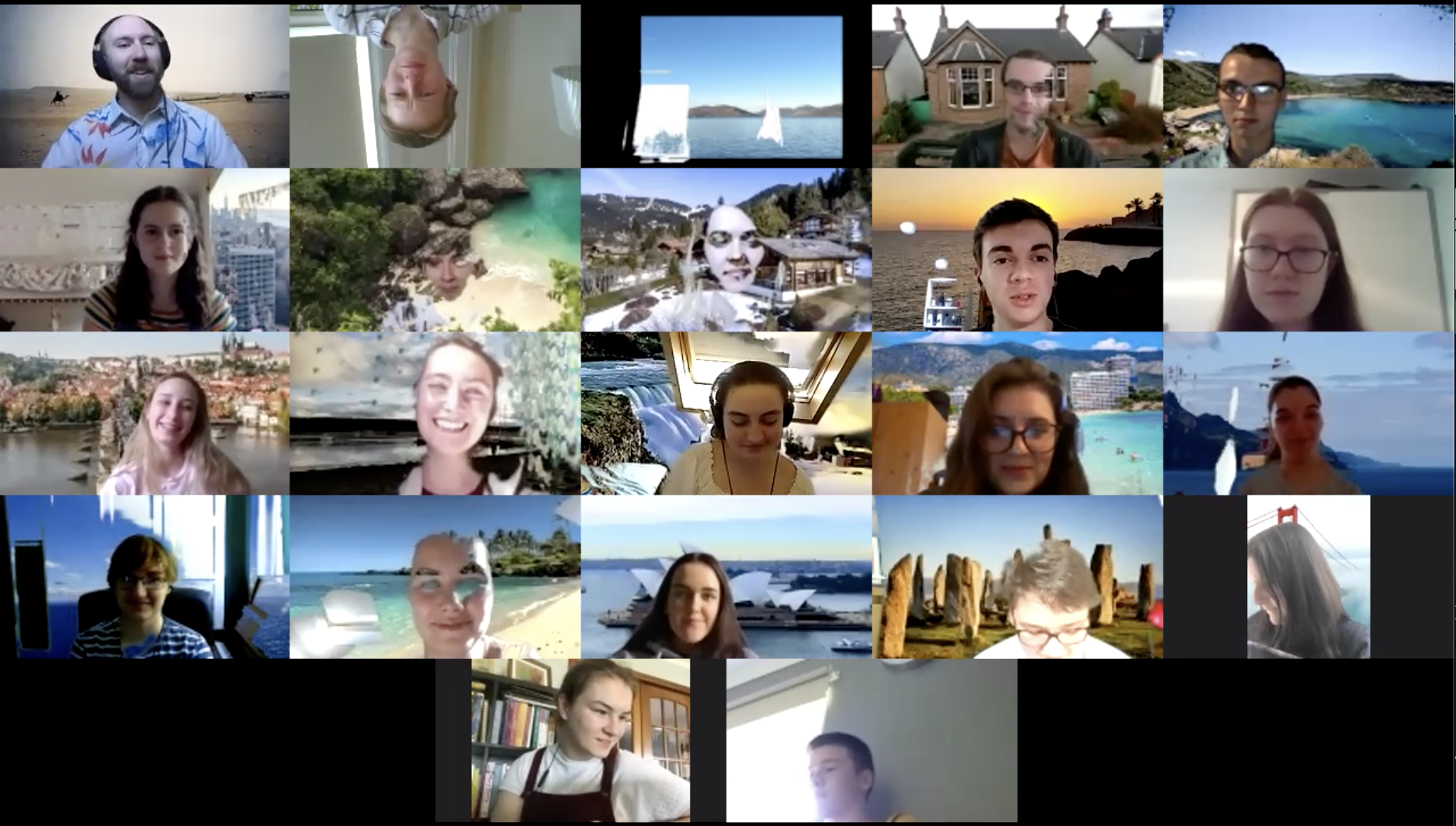 Nathan Hall and the RSNO young musicians convened on Zoom using backgrounds of exotic settings.