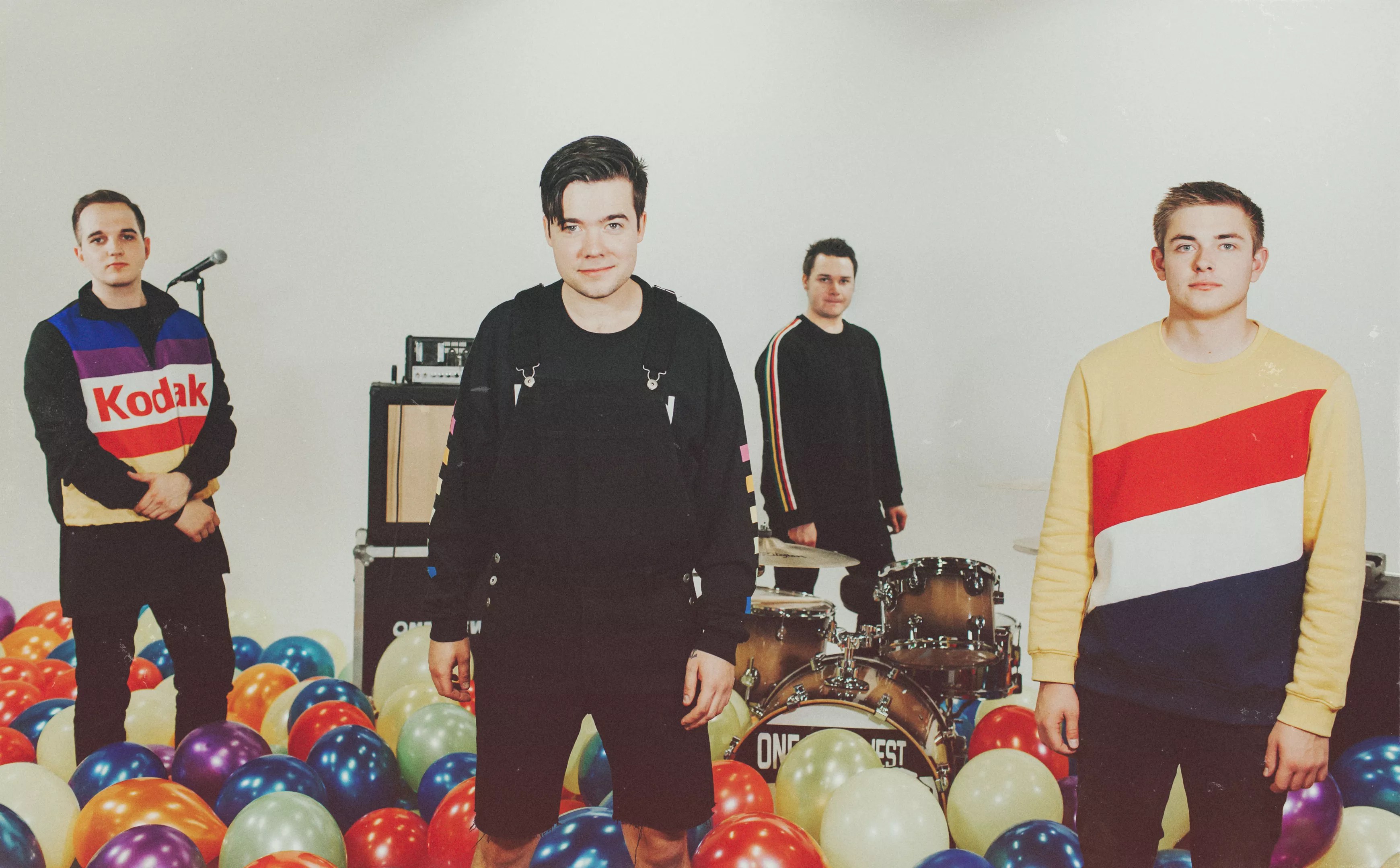The video is fairly simple: The bandmates play their instruments in a room filled with balloons and colors. But that doesn’t mean it didn’t come without challenges. Keeping the many balloons in place was a tedious process that included fans, Saran Wrap, and hours spent blowing up and tying off balloons.