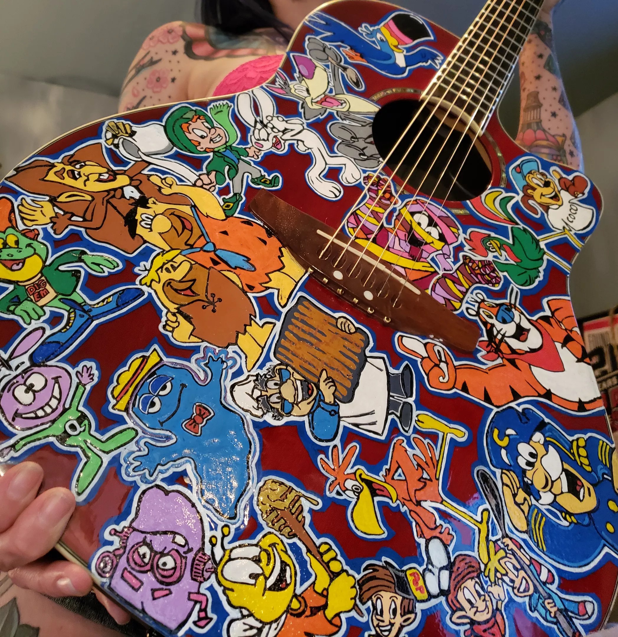 In his spare time, for the past decade, Wolfmeier has turned guitars, basses and ukuleles, working and non-working, into colorful paintings, either of his own imagination or for commission. From The Little Mermaid to 2Pac, a Furby to Beetlejuice, Wolfmeier has made a name for his company, Wolfmeier Guitars and More.
