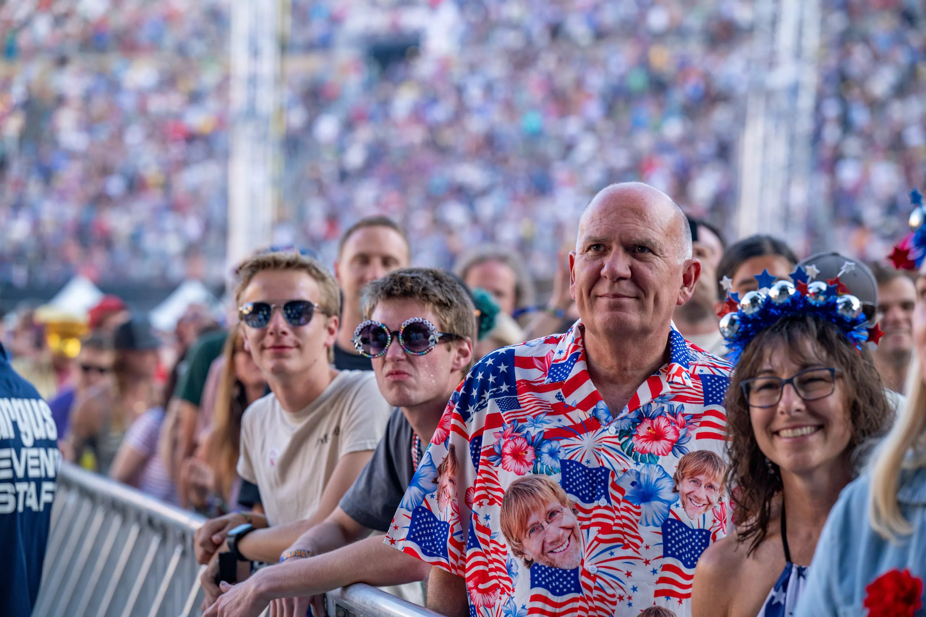 And the Fourth of July show at Folsom Field in Boulder was a unique treat in itself, because the holiday was largely ignored by both the band and the phans, aside from a few band-centered red, white and blue shirts in the crowd.