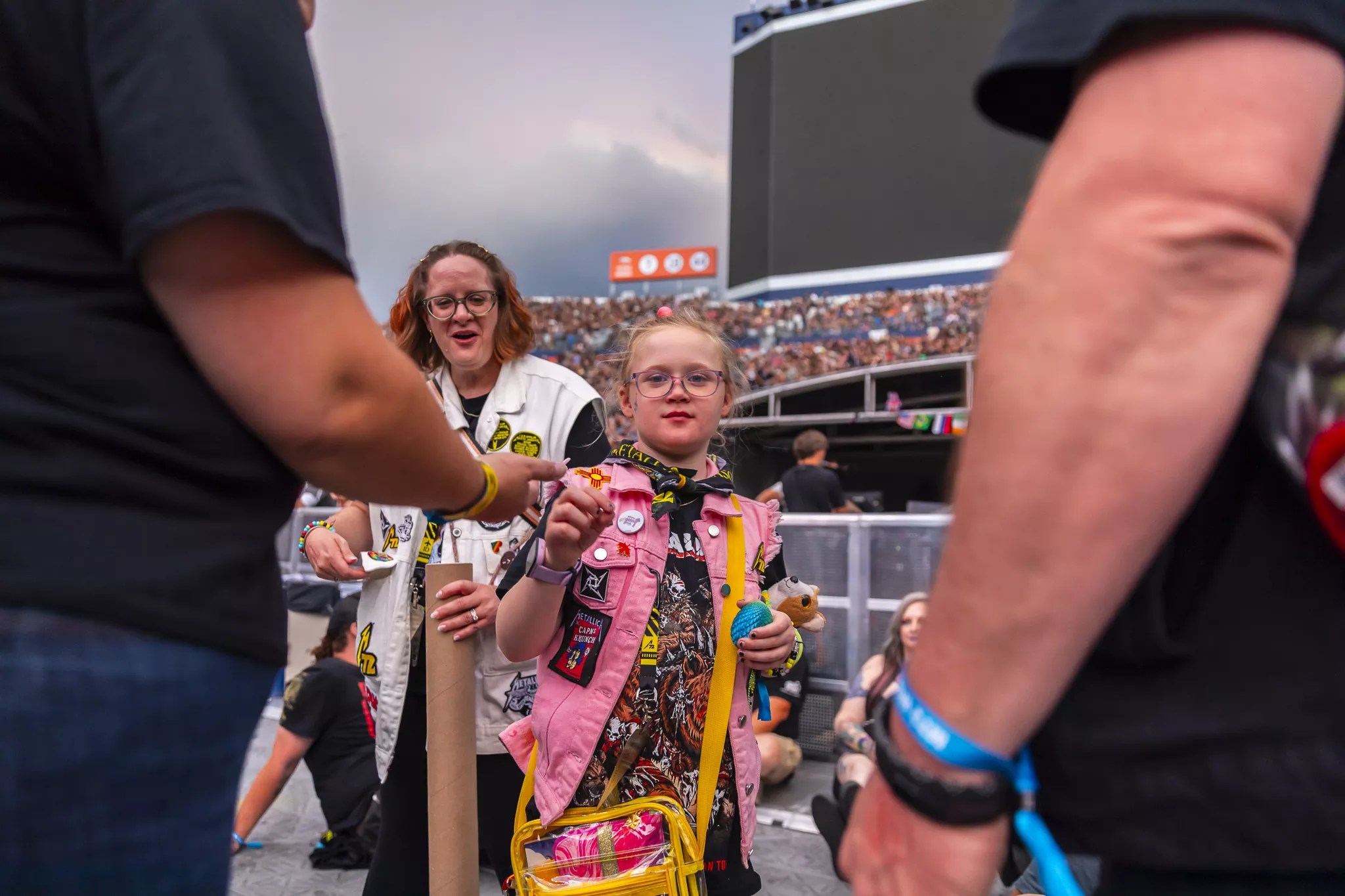 A young Metallica fan was handing out handmade buttons that featured her artwork.