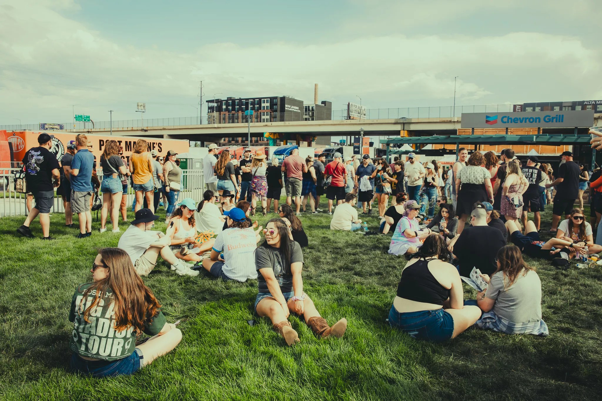 Fans relaxing before the show at Post Malone’s travelin’ tailgate.