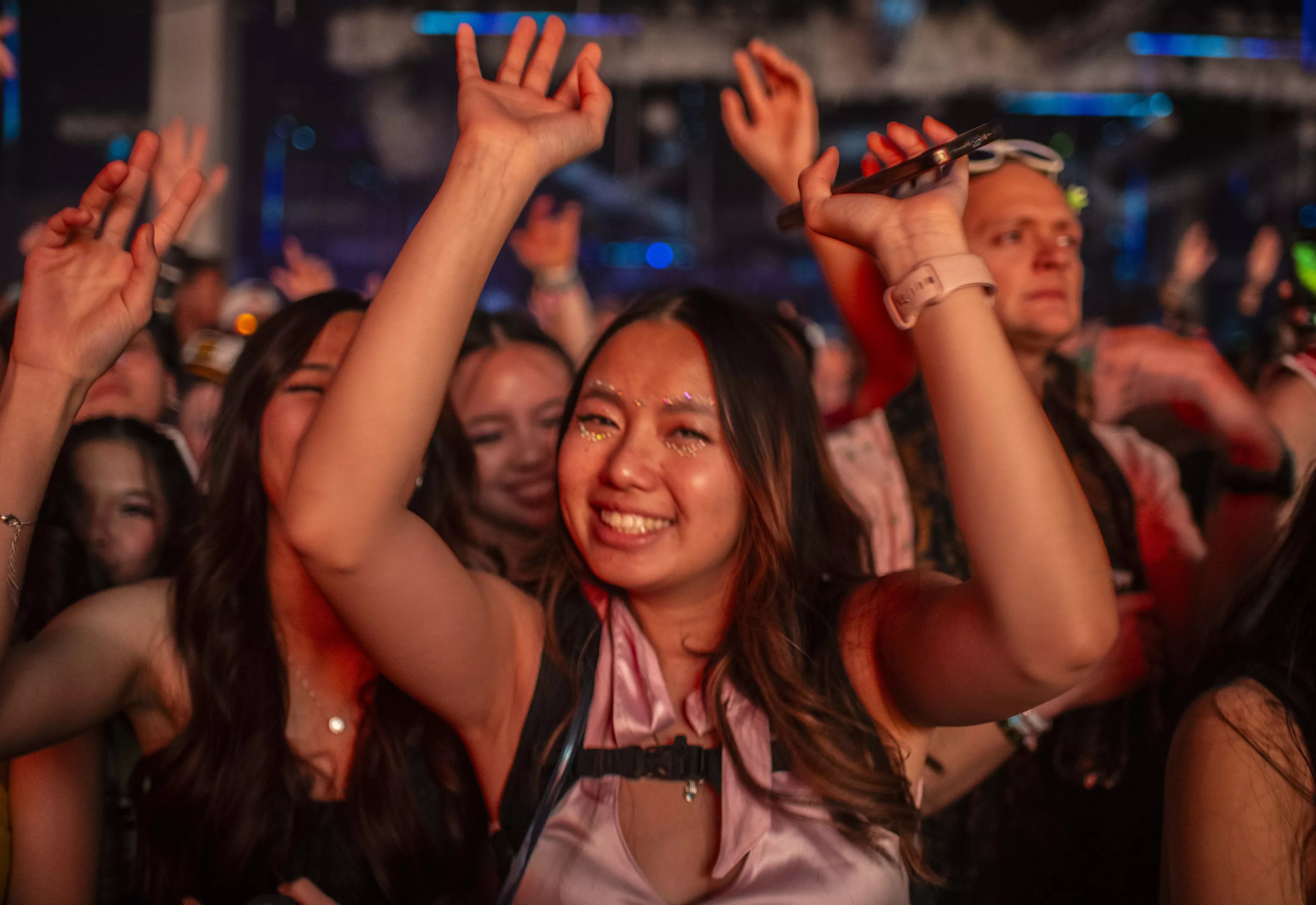 When the clock struck midnight, balloons dropped from the ceiling and laser lights cut through the air. People-watching was premium – bros in sunglasses bobbed their heads, clusters of teens shrieked with excitement. Get a look for yourself in these photos from the New Year’s Eve event: