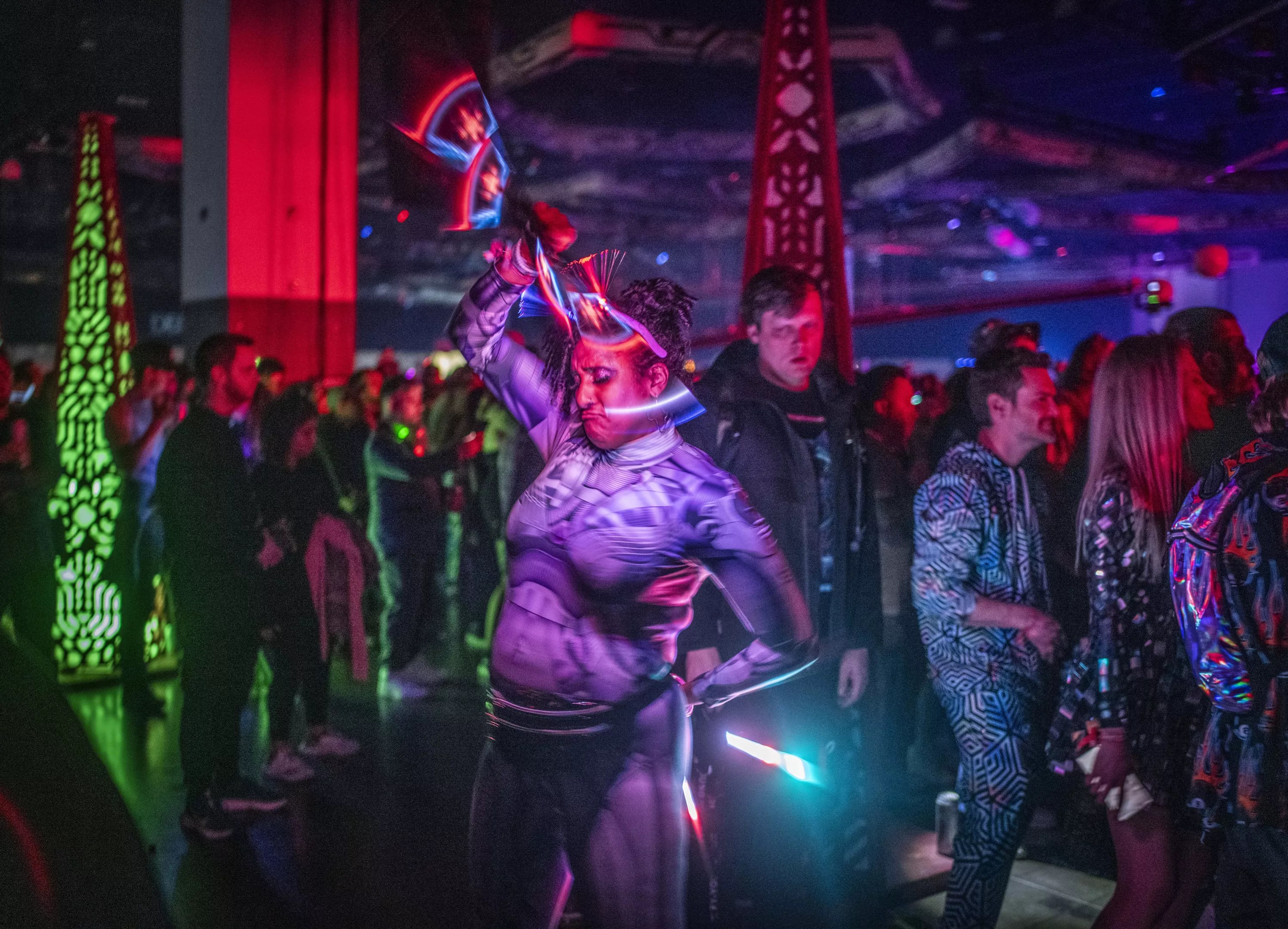red lasers at a rave