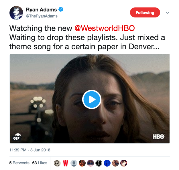 Apparently, this interaction was more than enough inspiration for the prolific 43-year-old musician, who’s released nearly twenty albums over his career. Last night, June 3, Adams tweeted that he was watching the new season of HBO’s A.I. fantasy series Westworld (he’s a fan) — and that he “mixed a theme song for a certain paper in Denver…” (It’s us!)