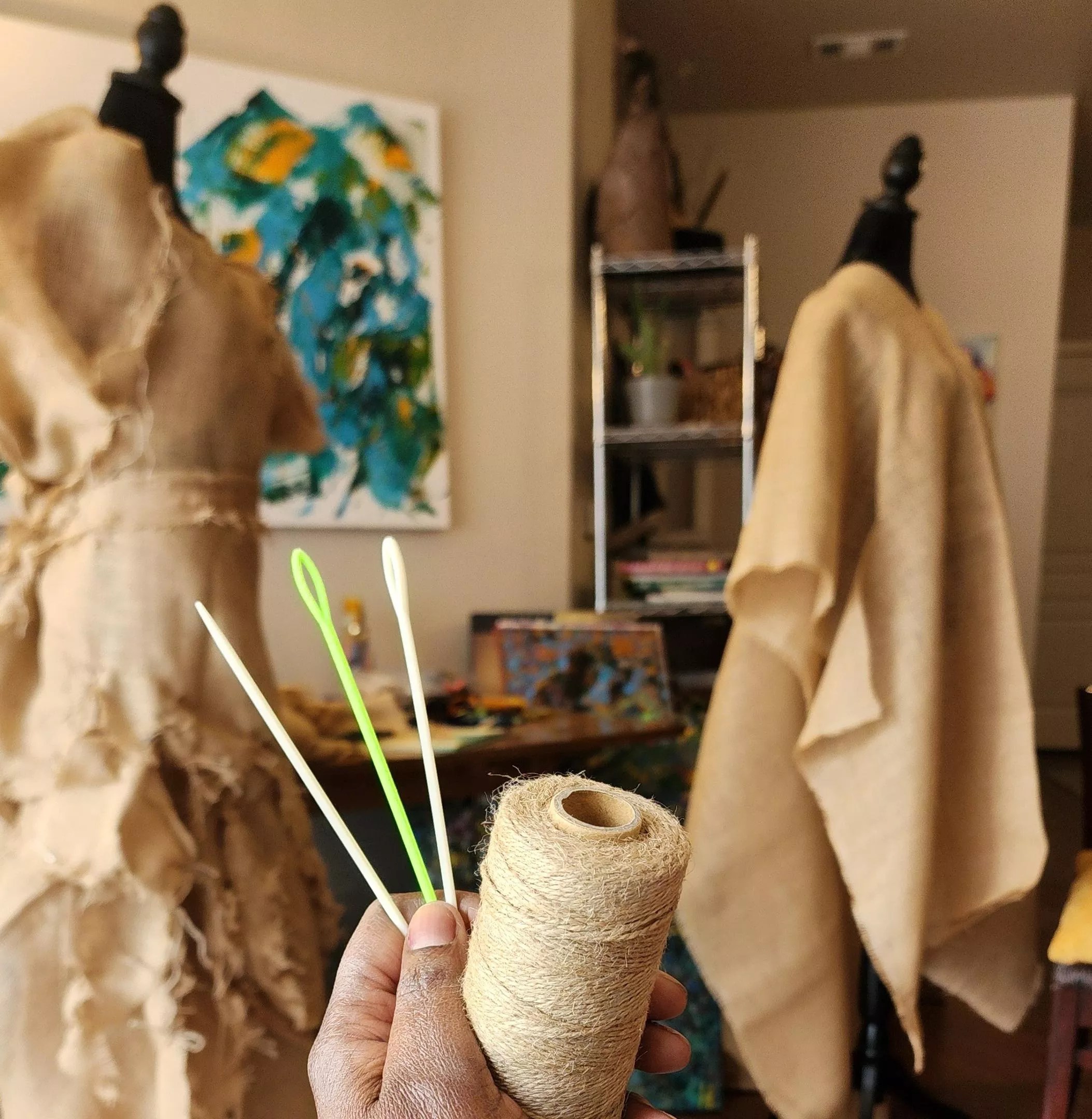 “Because of my vision loss, I am no longer able to sew with a needle and thread, but I can sew with twine,” says artist Chloé Duplessis.