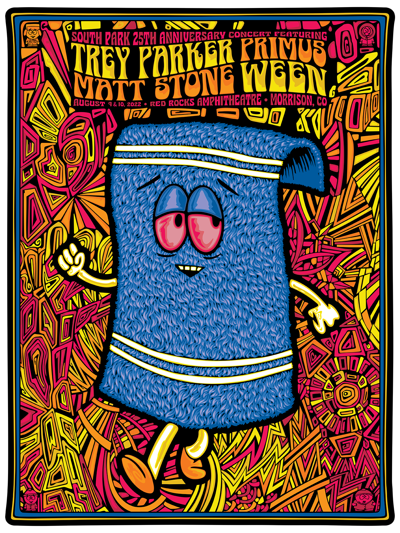 “This is the best night of our lives,” Parker said on Wednesday evening, the second and final night of the South Park 25th Anniversary Concert at Red Rocks Amphitheatre. But it was also a touching and unforgettable night for anyone who’s been a fan of the groundbreaking cartoon, which famously showcases irreverent Colorado fourth-graders Stan Marsh, Kyle Broflovsky, Eric Cartman and Kenny McCormick and highlights real-life locations in this state, everything from Casa Bonita to the Coney Island Boardwalk hot dog stand in Bailey.