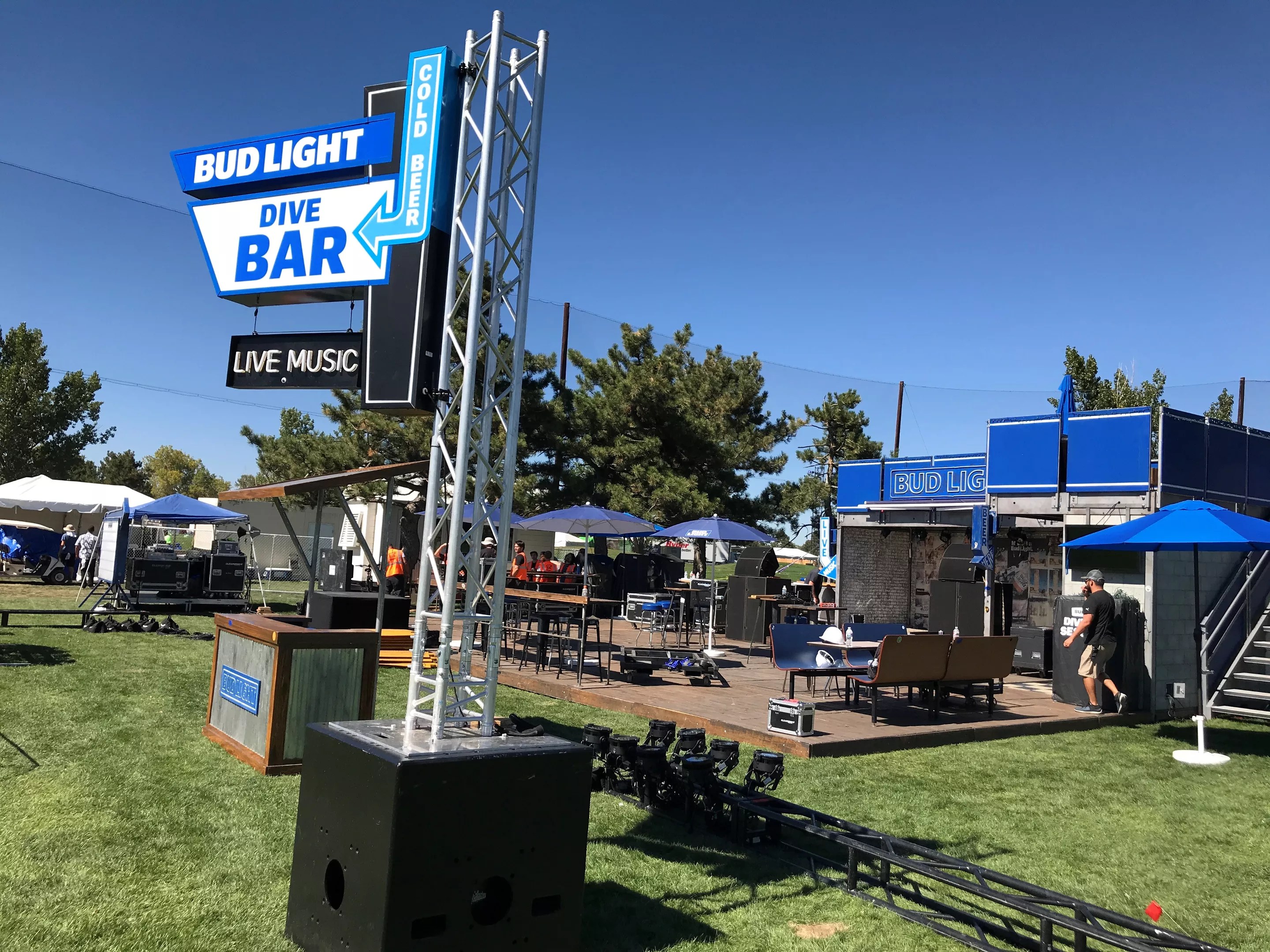 Grandoozy’s aspirations to celebrate the local don’t detract from the prominent messaging of mega-corporate sponsors. Good thing for them. And at least the Capital One branding throughout the grounds is authentic in its full-throttle embrace of capitalism. That starkly contracts the hokiest spot – the Bud Lite Dive Bar, the sorriest corny excuse for a dive bar I’ve ever seen.