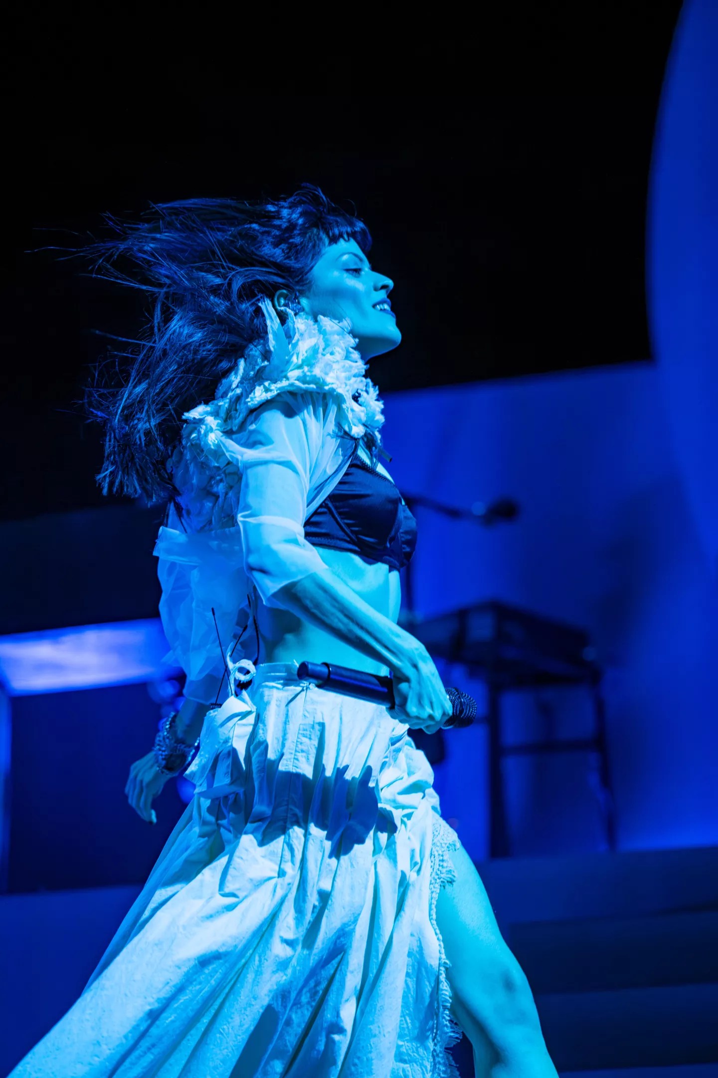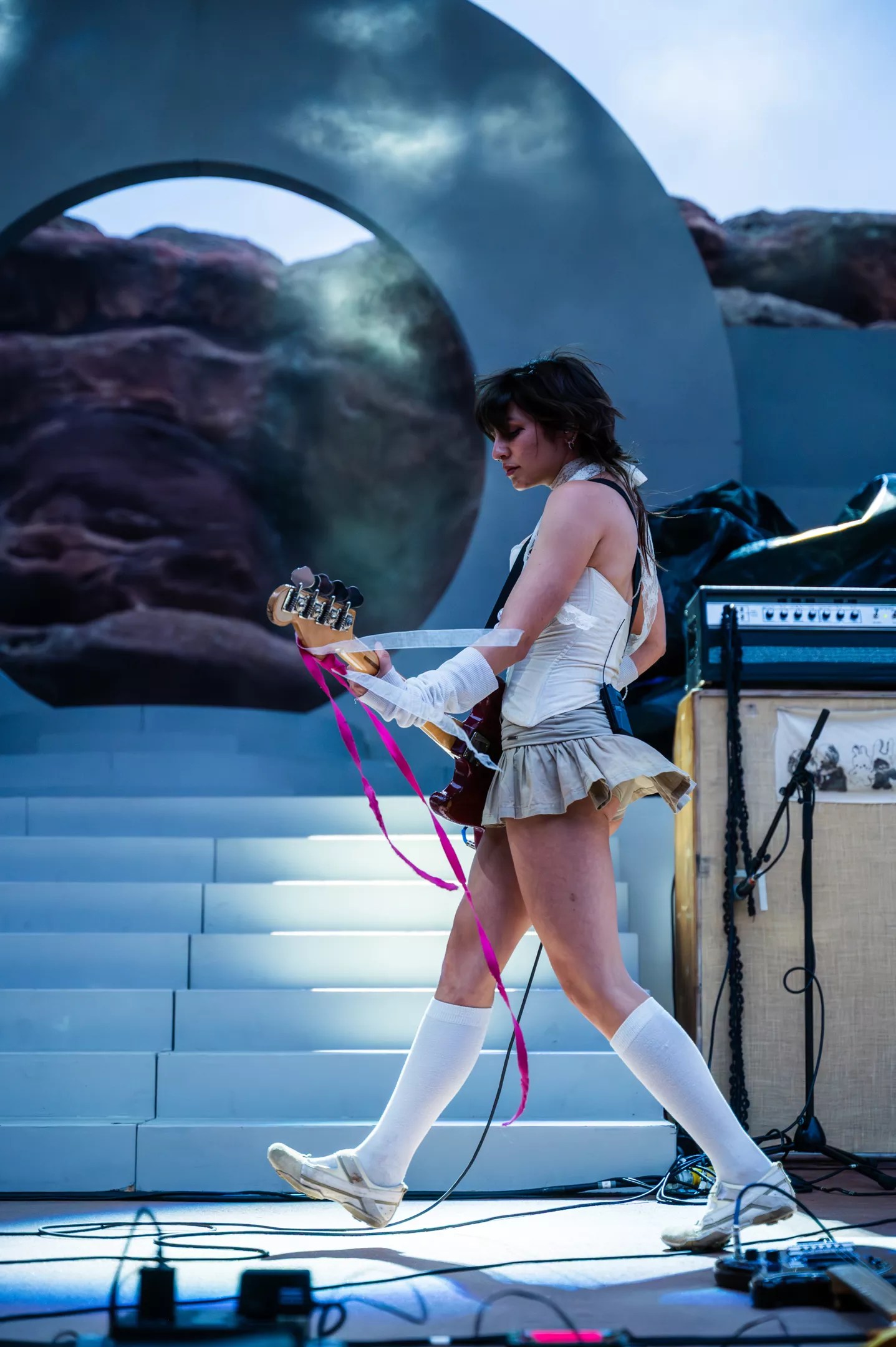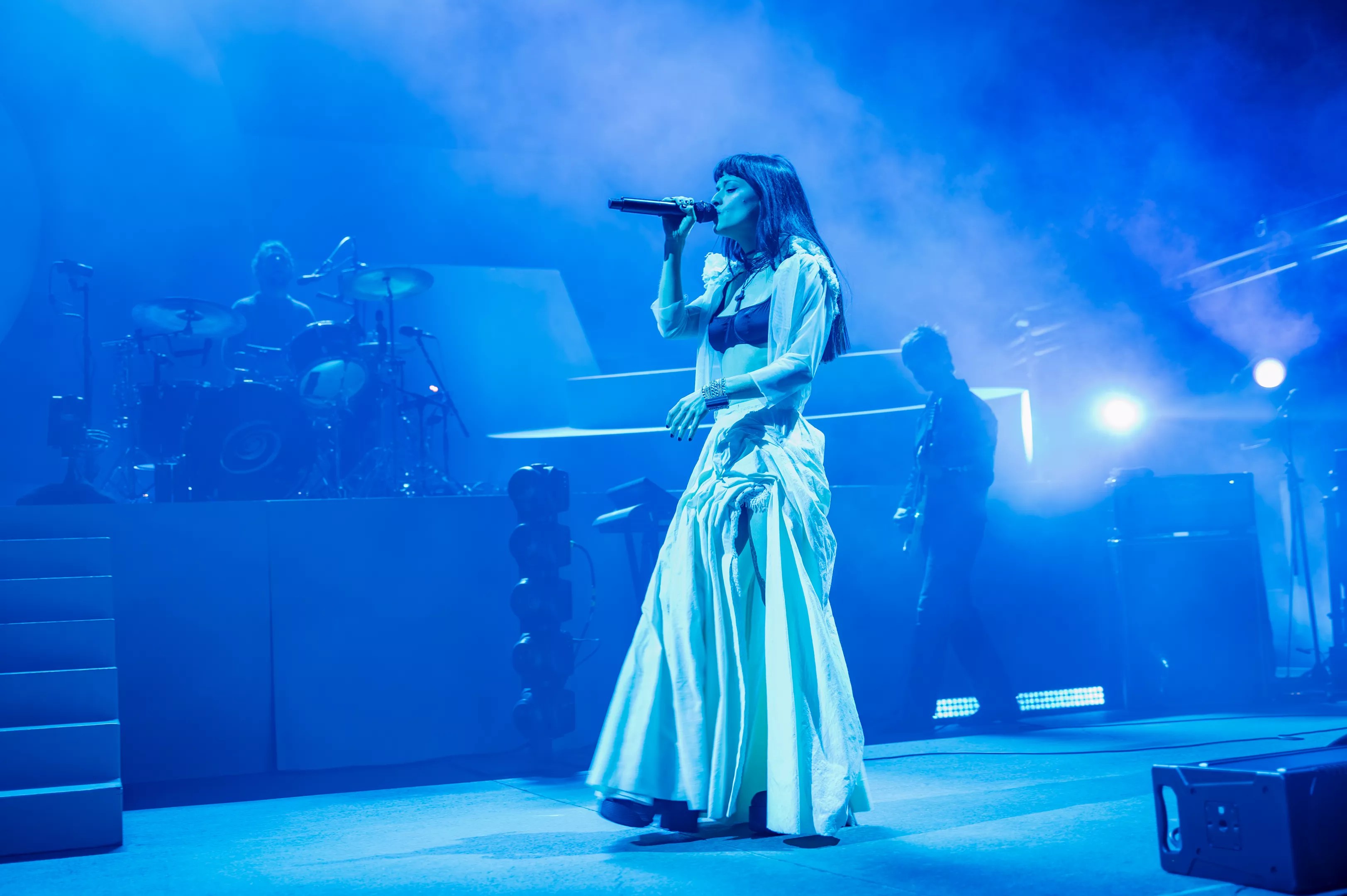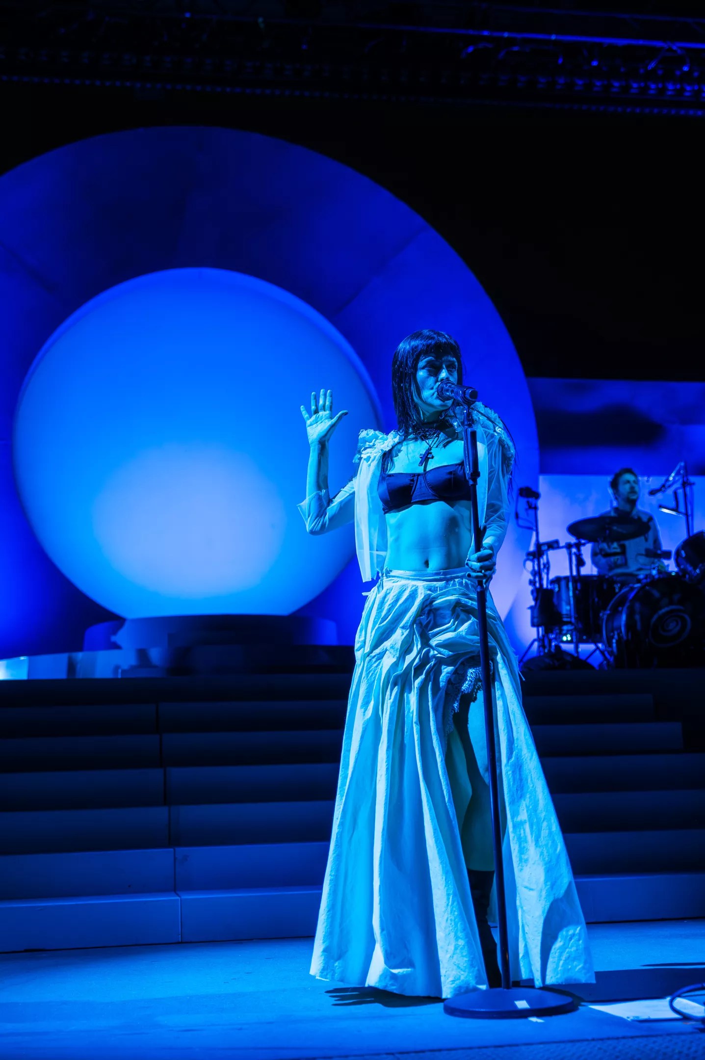 After the performance, Zardoya went backstage to dry herself off and change into a new outfit, while the band played “Superclean” with Conway as lead vocalist. A brief moment of darkness not only raised the tension of what was to come, but had fans screaming for the singer to come back on stage. Out of the blue (quite literally), Zardoya appeared with wet hair, a white dress and a guitar and began to sing fan-favorite track “No One Noticed.”