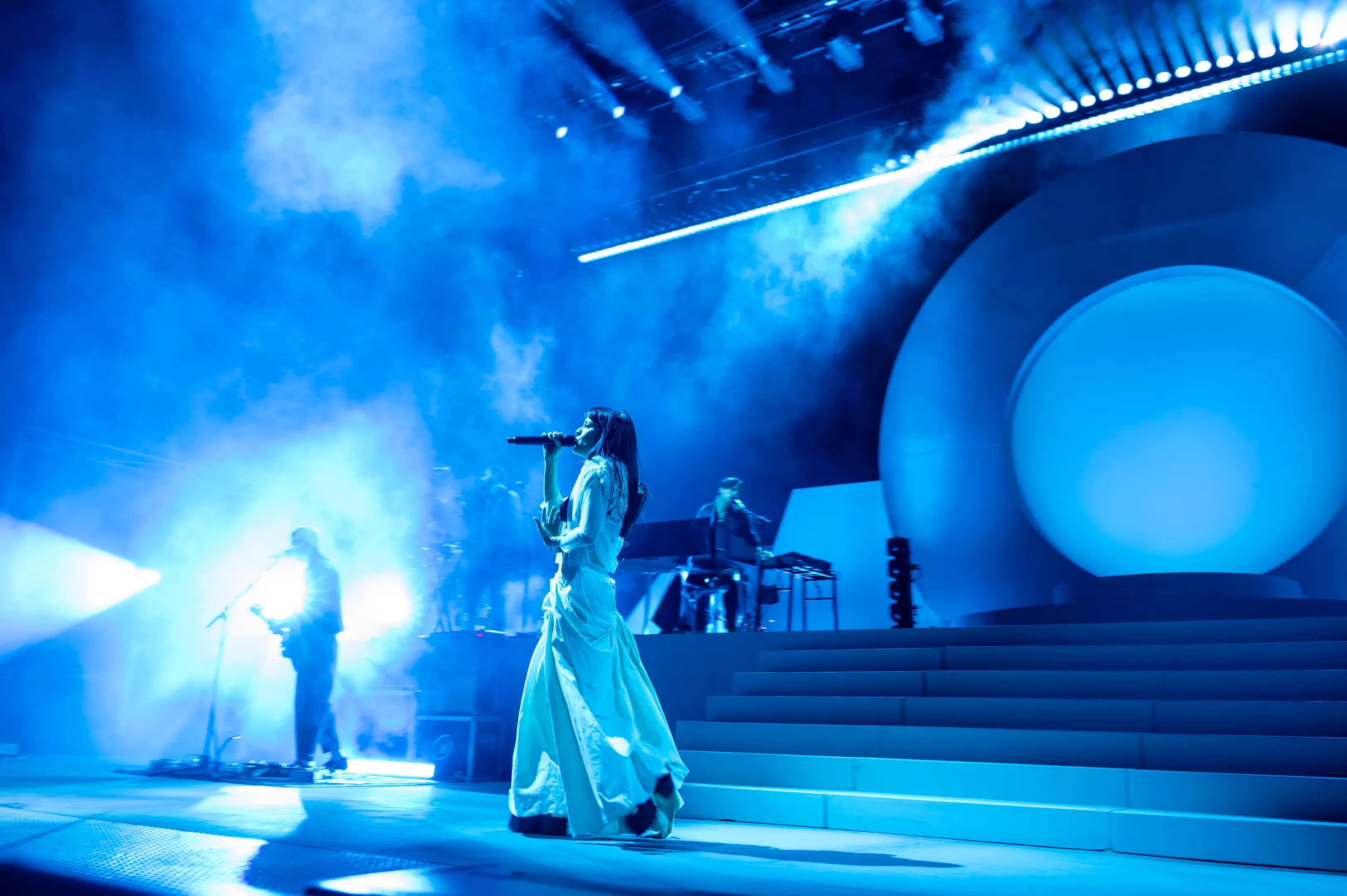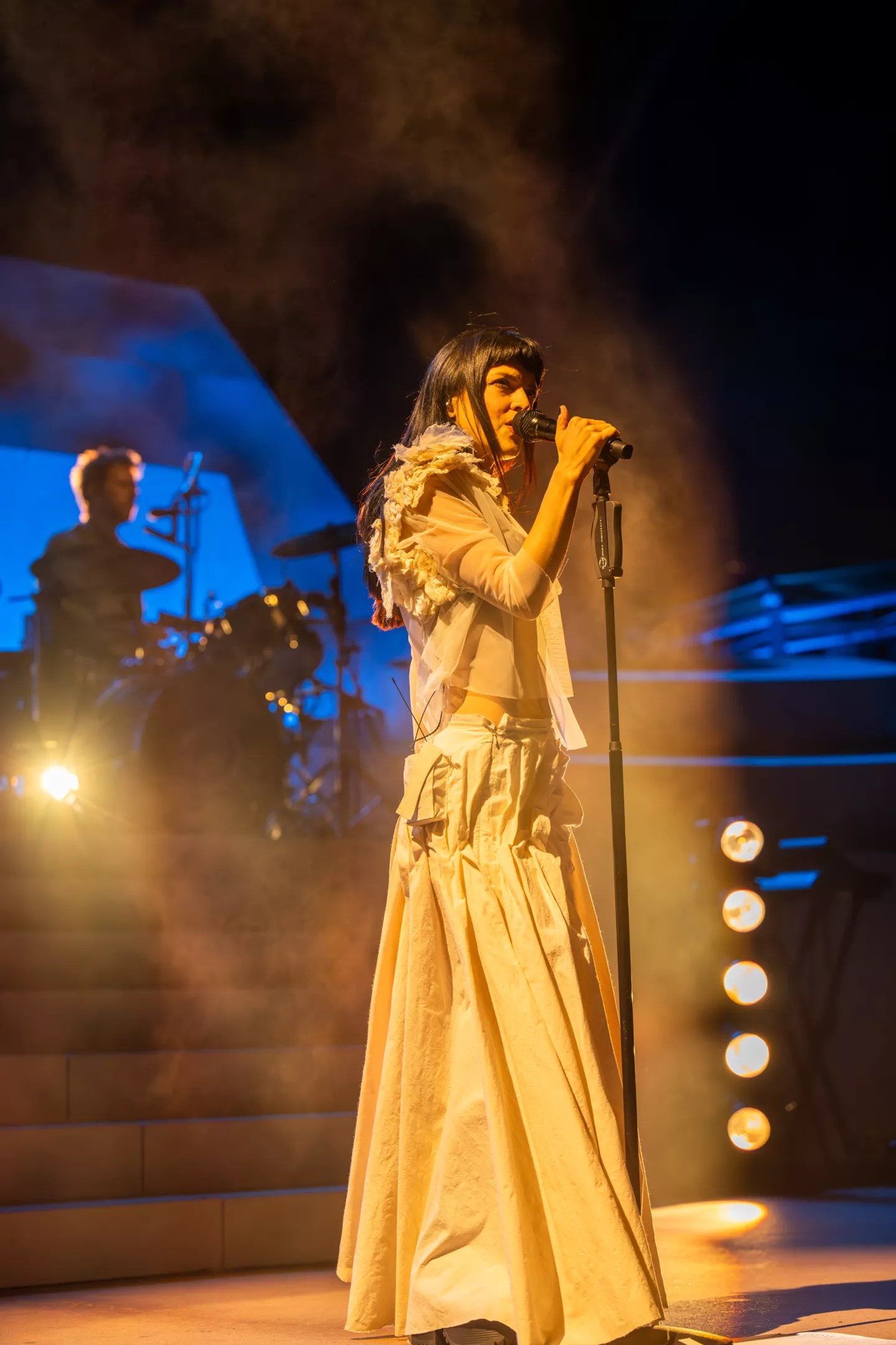 And that love could be felt at Red Rocks. Los Angeles-based rock band julie opened up the concert as thousands of fans entered the venue. The trio might have looked small, but it put on a mighty performance to kick off the evening. And then it was time for the shining moment: Blue lights began strobing to the sound of a futuristic piano that signaled the headliner was about to take the stage. Once the lights turned white and faded out, Zardoya’s shadow was highlighted by a blue spotlight and the audience erupted.