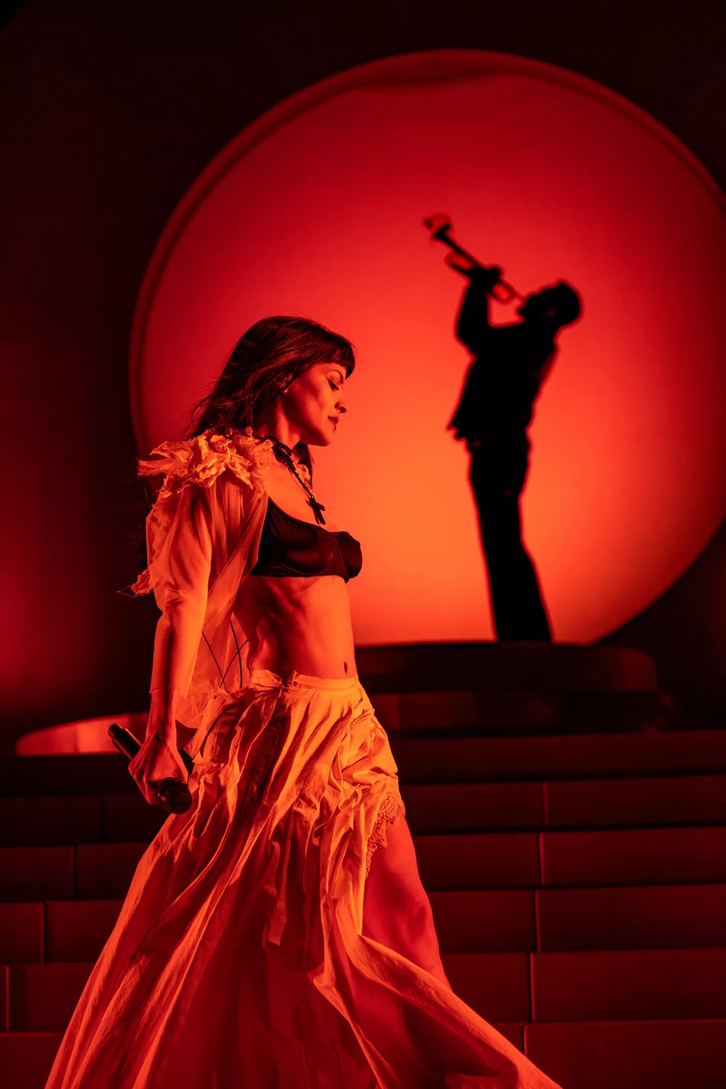 As the lights shifted from deep sea blue to a warm orange, the ambiance changed immediately and Zardoya was back to dancing and encouraging the audience to match her energy. Before the final track on the setlist, “Cariño,” Zardoya took one final moment to thank those behind the show, from fans to the nature that surrounds Red Rocks.