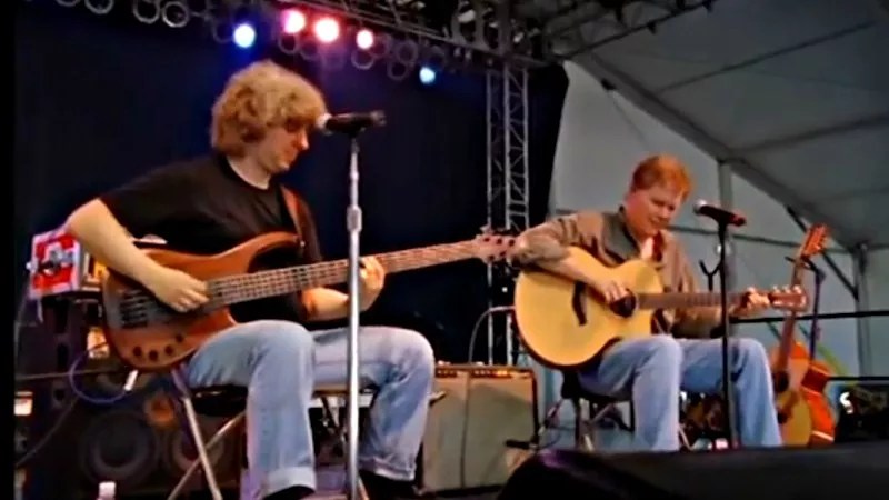 Phish’s Mike Gordon and Leo Kottke at Bonnaroo in 2003.