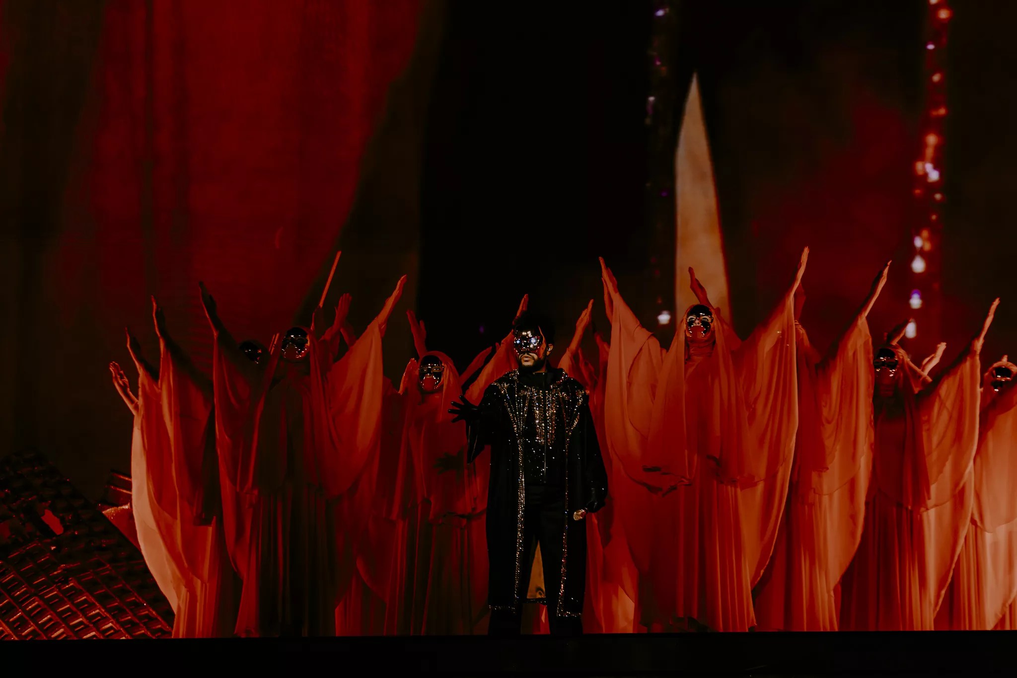 The Weeknd’s performances include elaborate performers and themes.