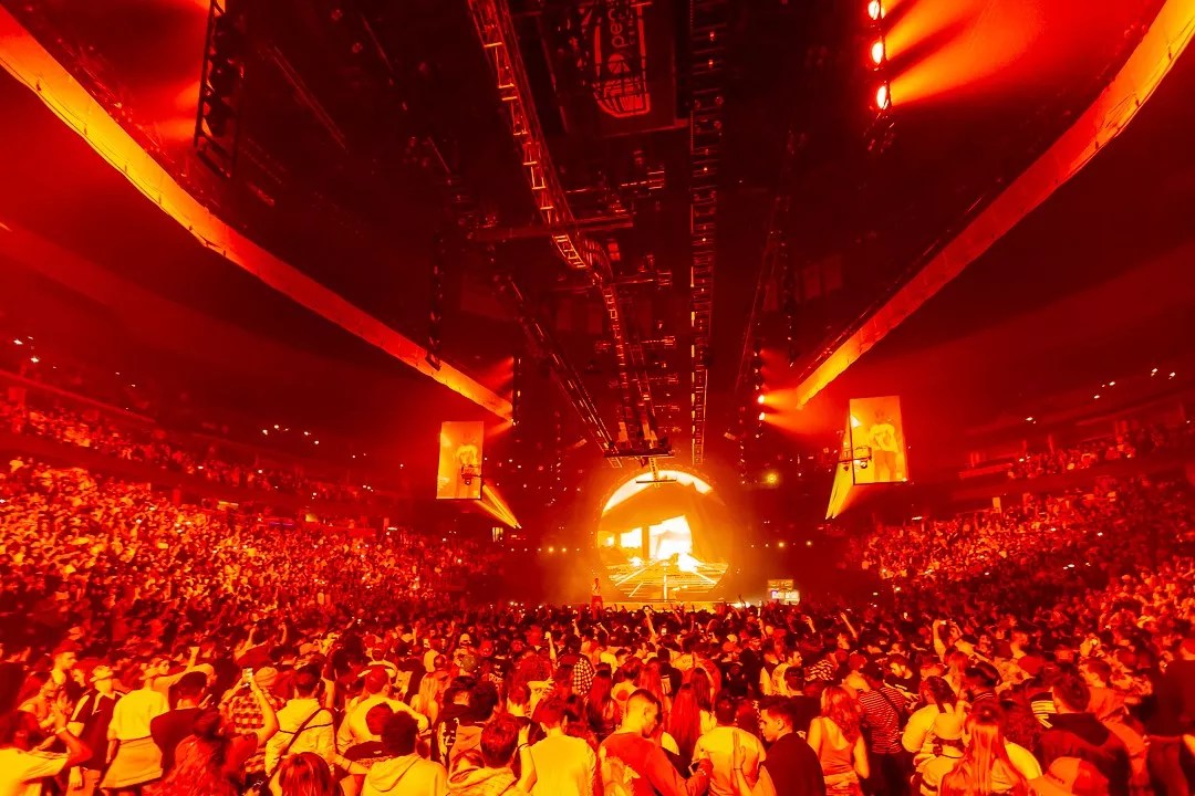 The battle-ram bass, cranked so loud that the rest of his beats and voice were suffocated, never stopped threatening tinnitus for all. That throbbing noise, strobes and flames created a psychedelic experience that echoed on hours after the show.