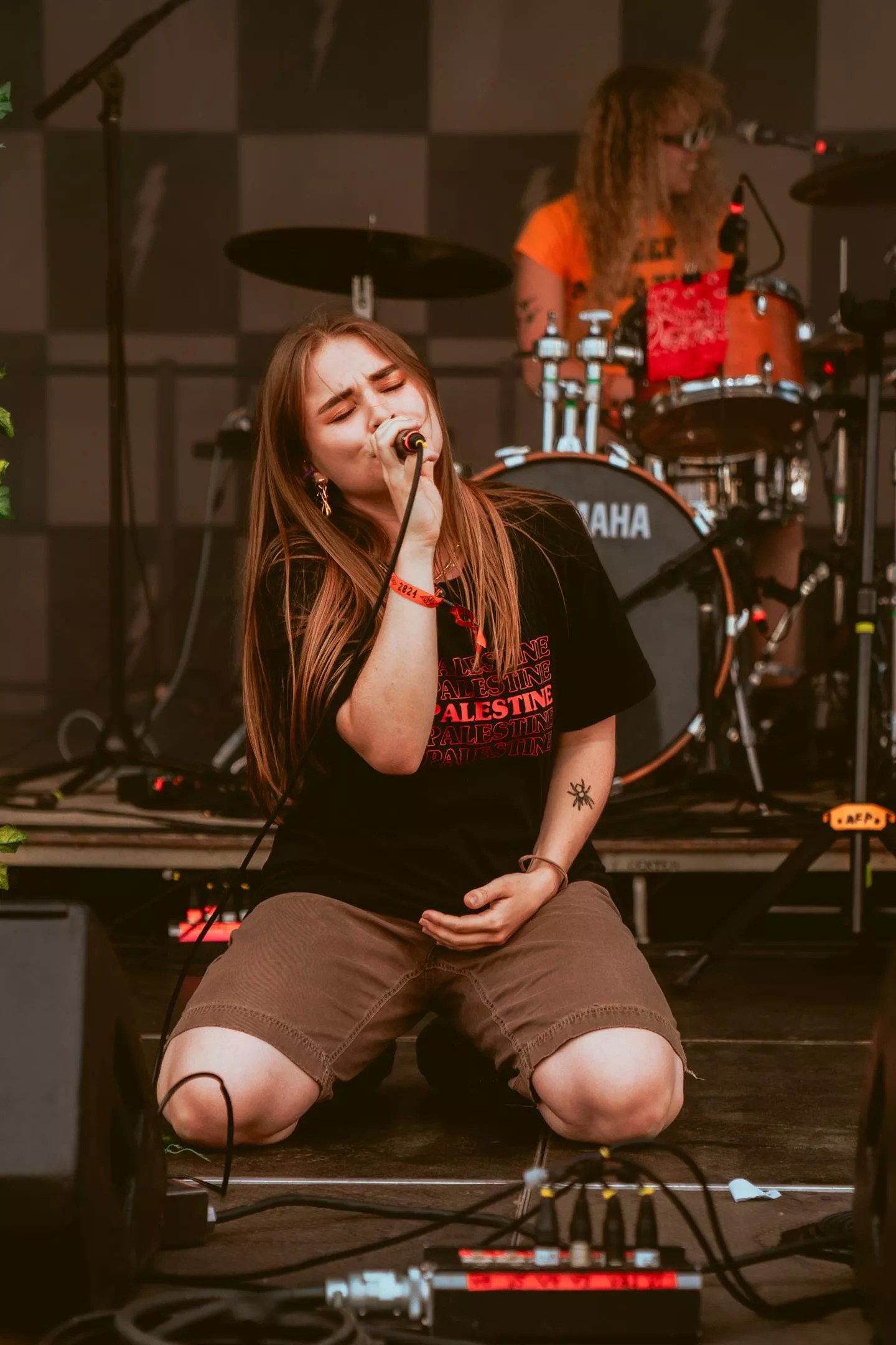 Amyl and the Sniffers performing on the Showcase Stage during day 3 of UMS 2024.