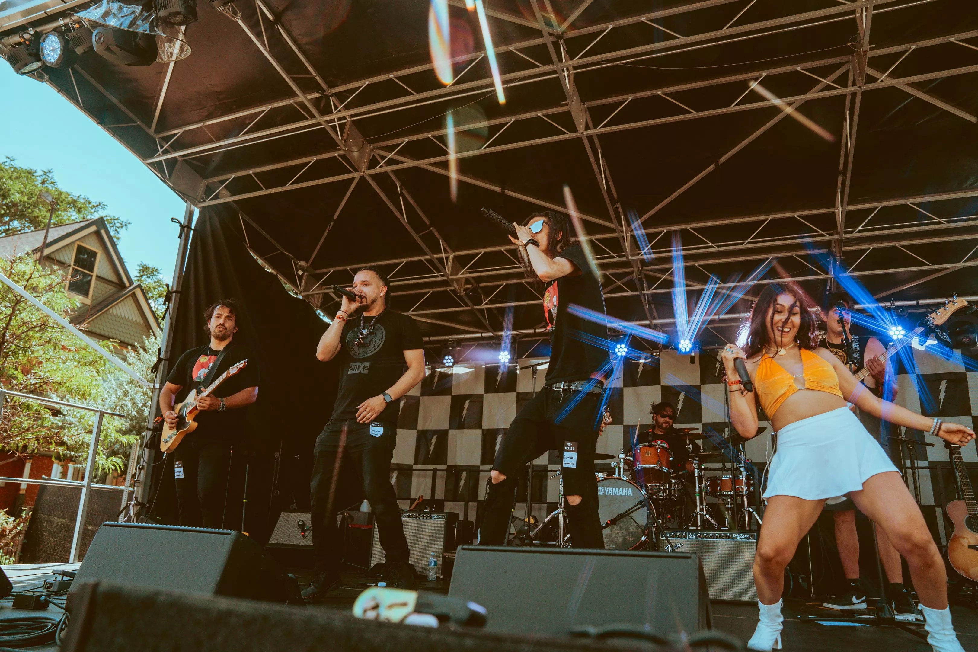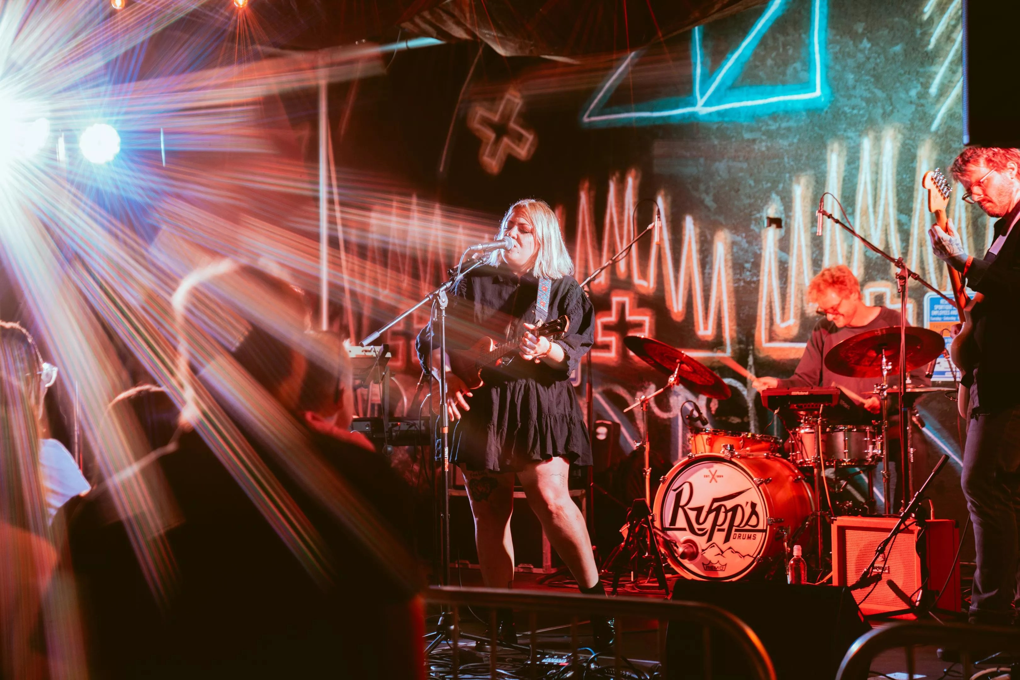 The Milk Blossoms performing on the Backyard Stage during day 1 of UMS 2024.