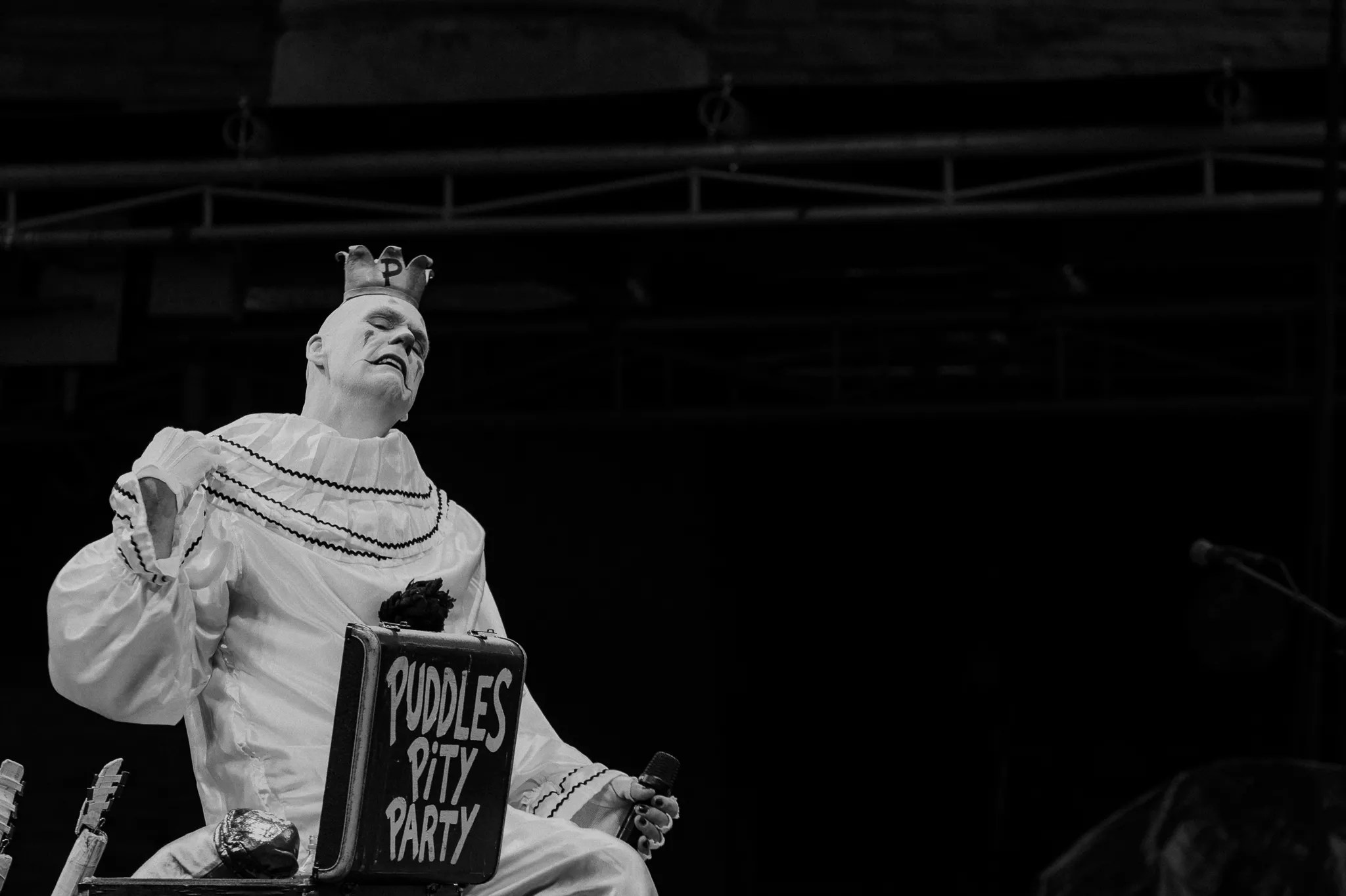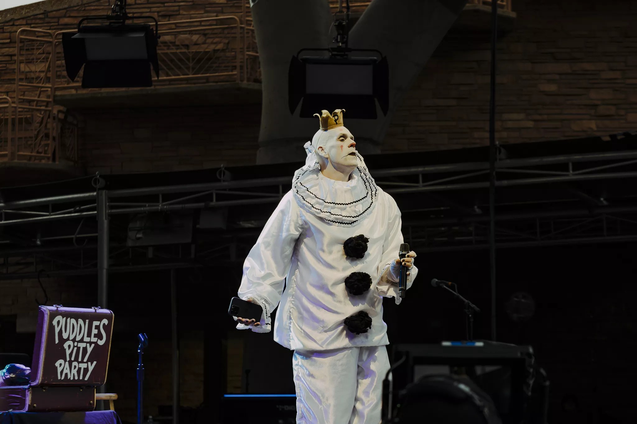 Puddles Pity Party opened the show with haunting vocals and silent comedy, dressed in his signature Pierrot clown outfit. Puddles is the alter-ego of Mike Geier, who brings the towering clown to life with baritone vocals and mime-like comedy.