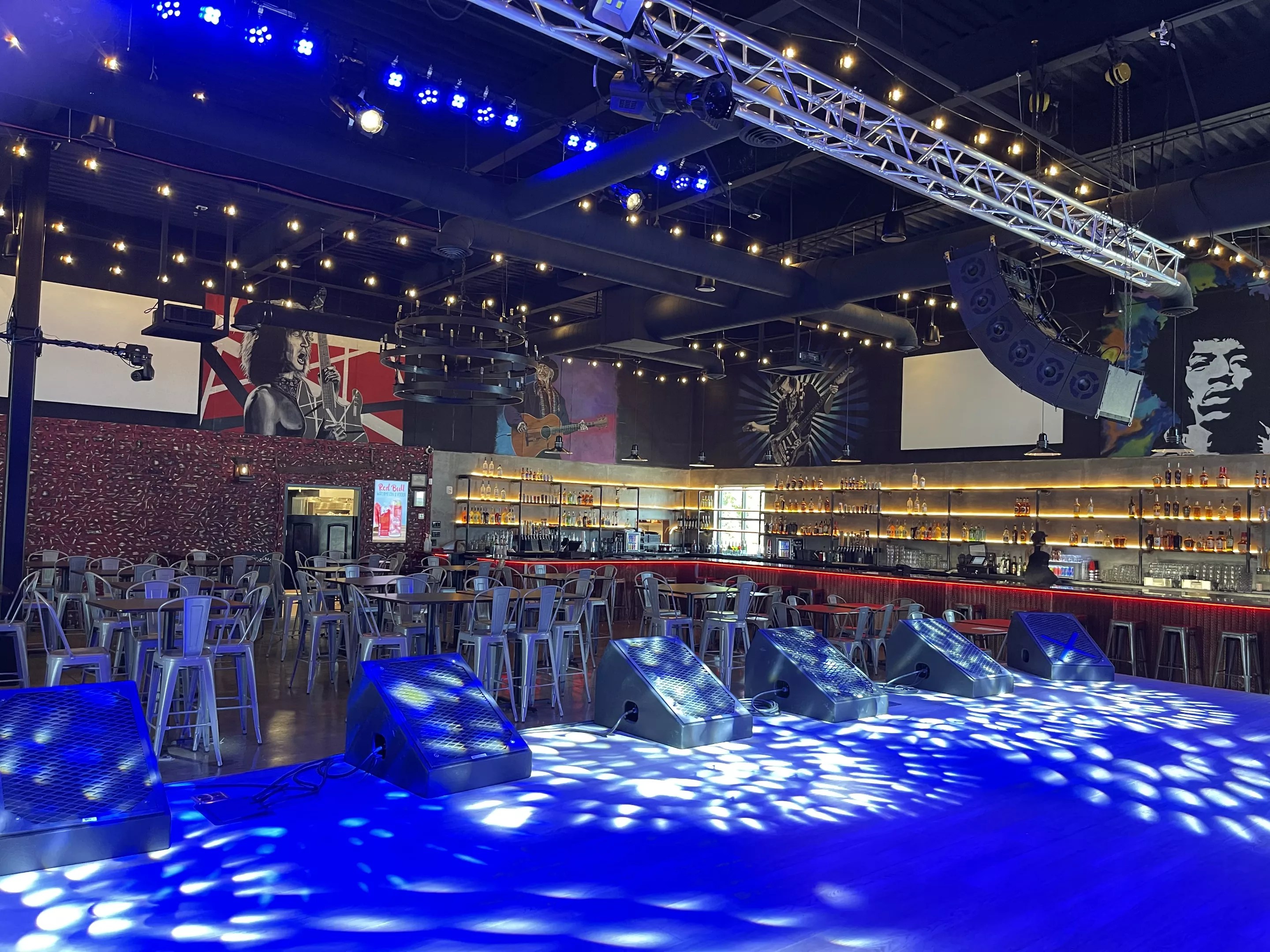 The Wild Goose’s indoor stage is on par with a club like the Gothic Theatre, says Dellinger. The venue sports high-end sound and lighting systems.