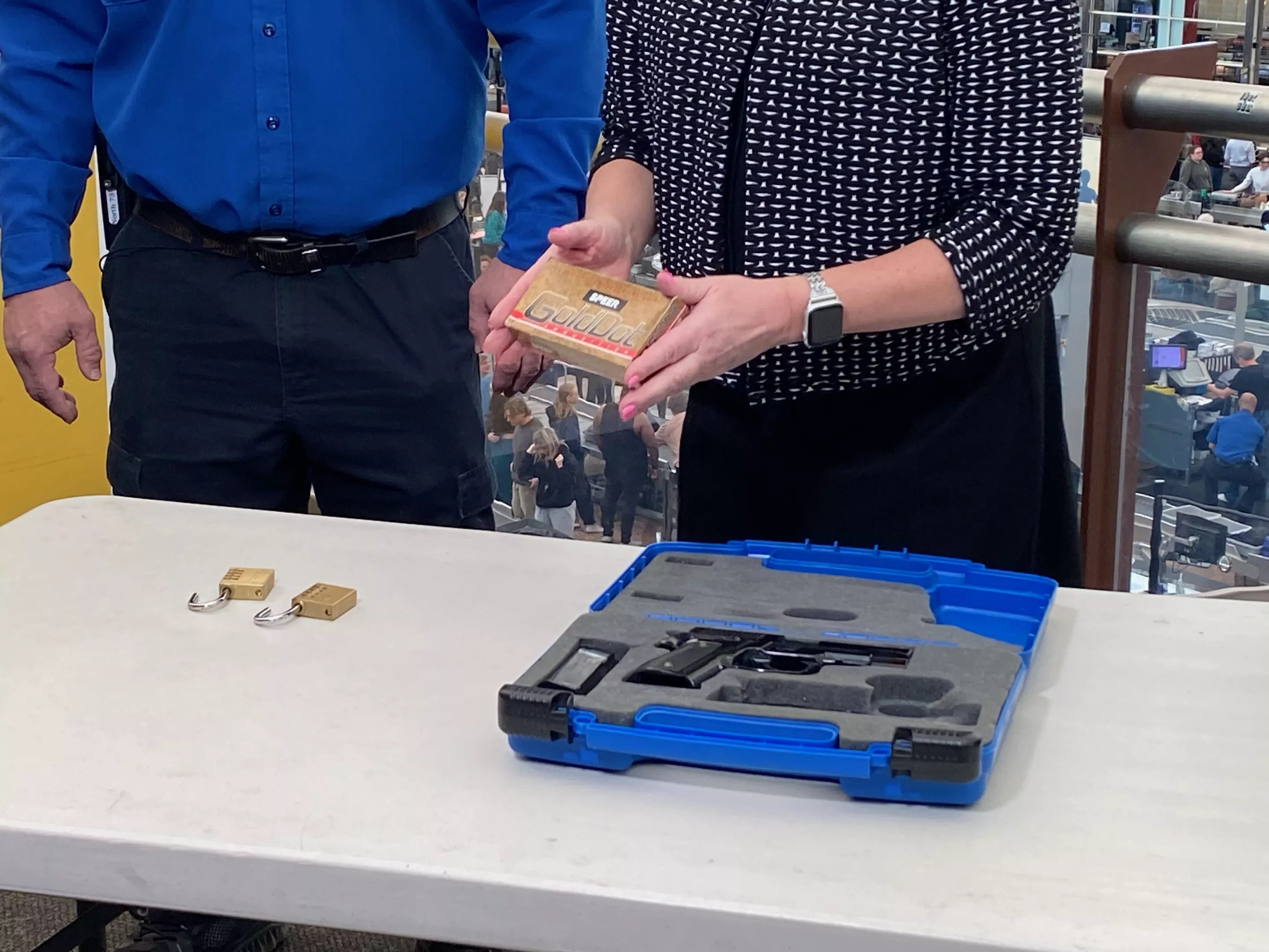 Unlike other locked items, the TSA recommends a non-TSA-approved lock for those cases as an extra layer of protection against the gun’s being removed from its case. Travelers must notify the ticketing agent that a bag contains a firearm when they check it.