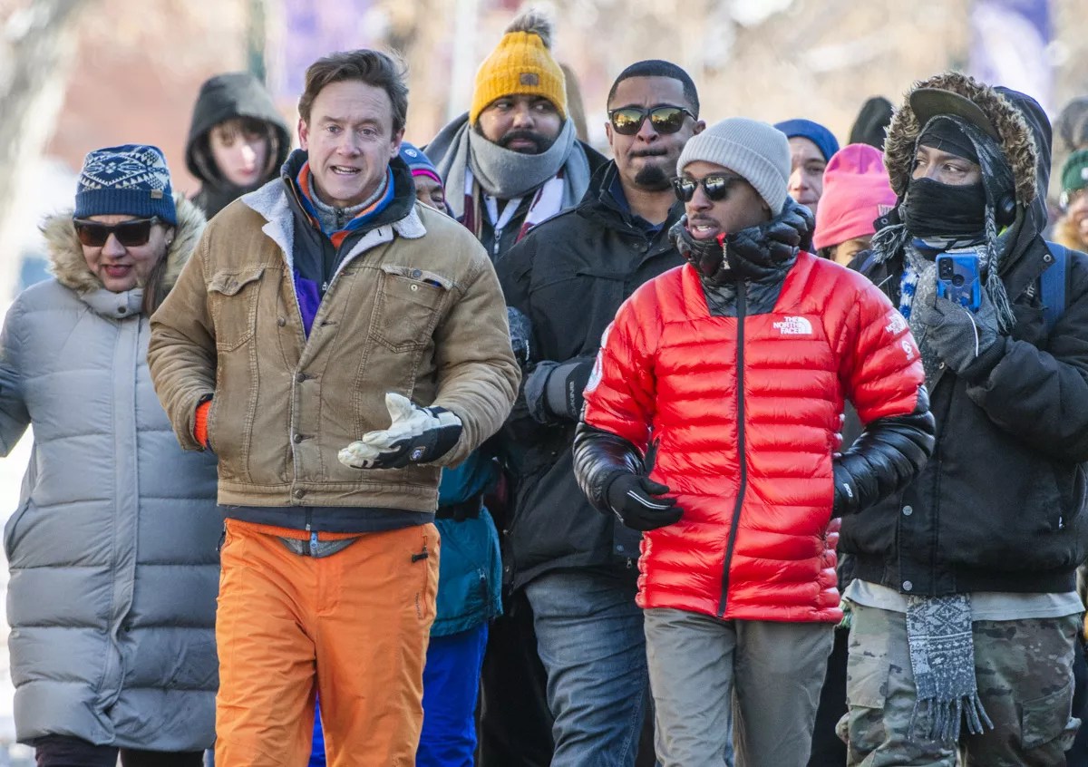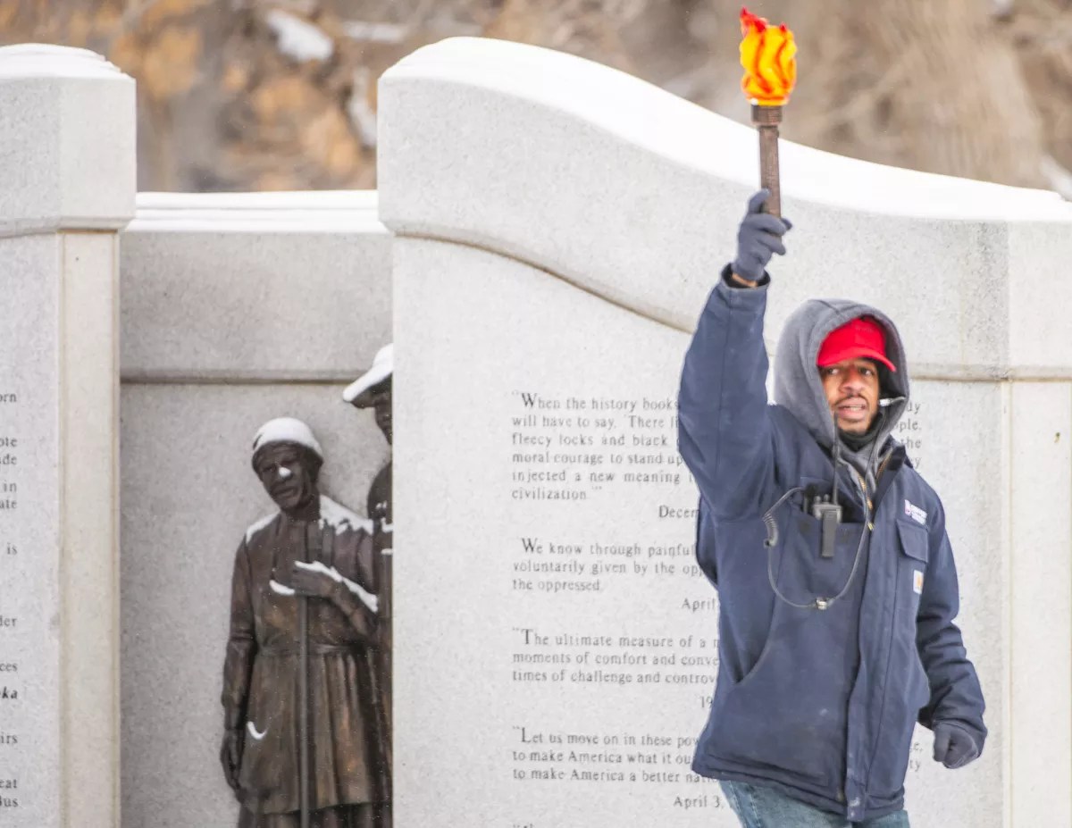 A light dusting of snow on the MLK statue greeted Marade marchers on Monday morning.