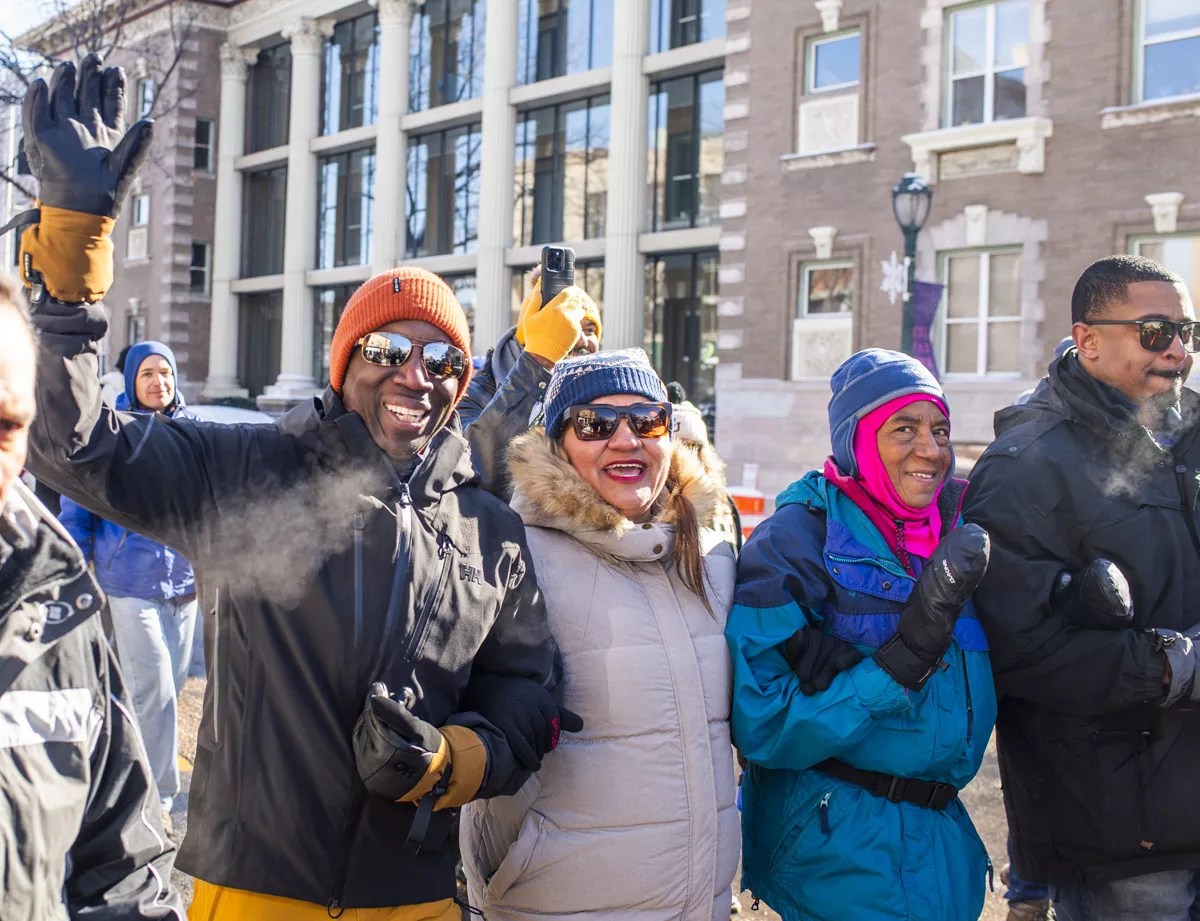 Single-digit temperatures led to a much smaller crowd; here are all the Marade attendees in one photo.