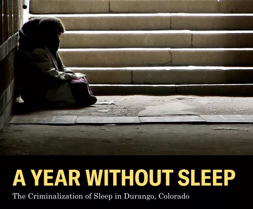 The ten-page report, A Year Without Sleep, takes the City of Durango to task for not allowing homeless residents to sleep anywhere outside while at the same time not offering adequate shelter options. “Citations clearly show that Durango police officers enforce the ‘no camping’ ordinance as a ‘no sleeping’ ordinance, making criminal the involuntary and harmless act that unhoused people cannot help but do: sleep,” write the report’s authors, Rebecca Wallace and Helen Griffiths of the ACLU of Colorado.