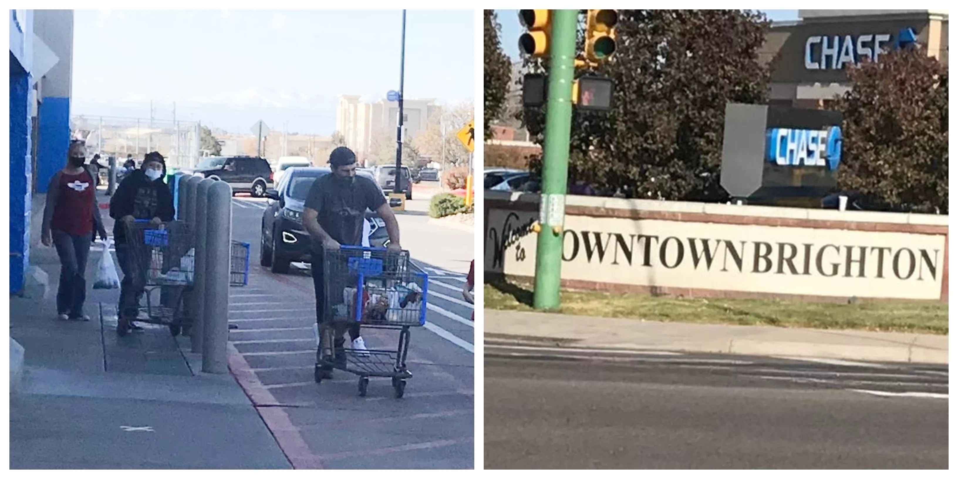 Among the dozens of stores we cruised by in Brighton, ranging from a King Soopers to mom-and-pop shops, we didn’t see a single one monitoring capacity to allow for greater social distancing. At the Walmart in the downtown area, customers were allowed to enter at will rather than wait for admittance on a one-in, one-out basis.