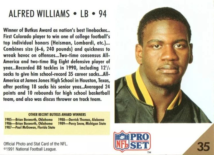 A sports card from Alfred Williams’s time with the CU Buffaloes.