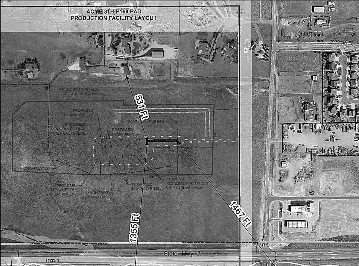 She points to the Acme Pad, a thirty-well site planned in Erie, as one of those bellwethers. Another Crestone project, the proposed location sits just 531 feet from the nearest home – just over the minimum setback currently mandated by state law – and not much farther from large subdivisions in nearby Broomfield. Crestone’s application for the Acme Pad is currently pending before the COGCC.
