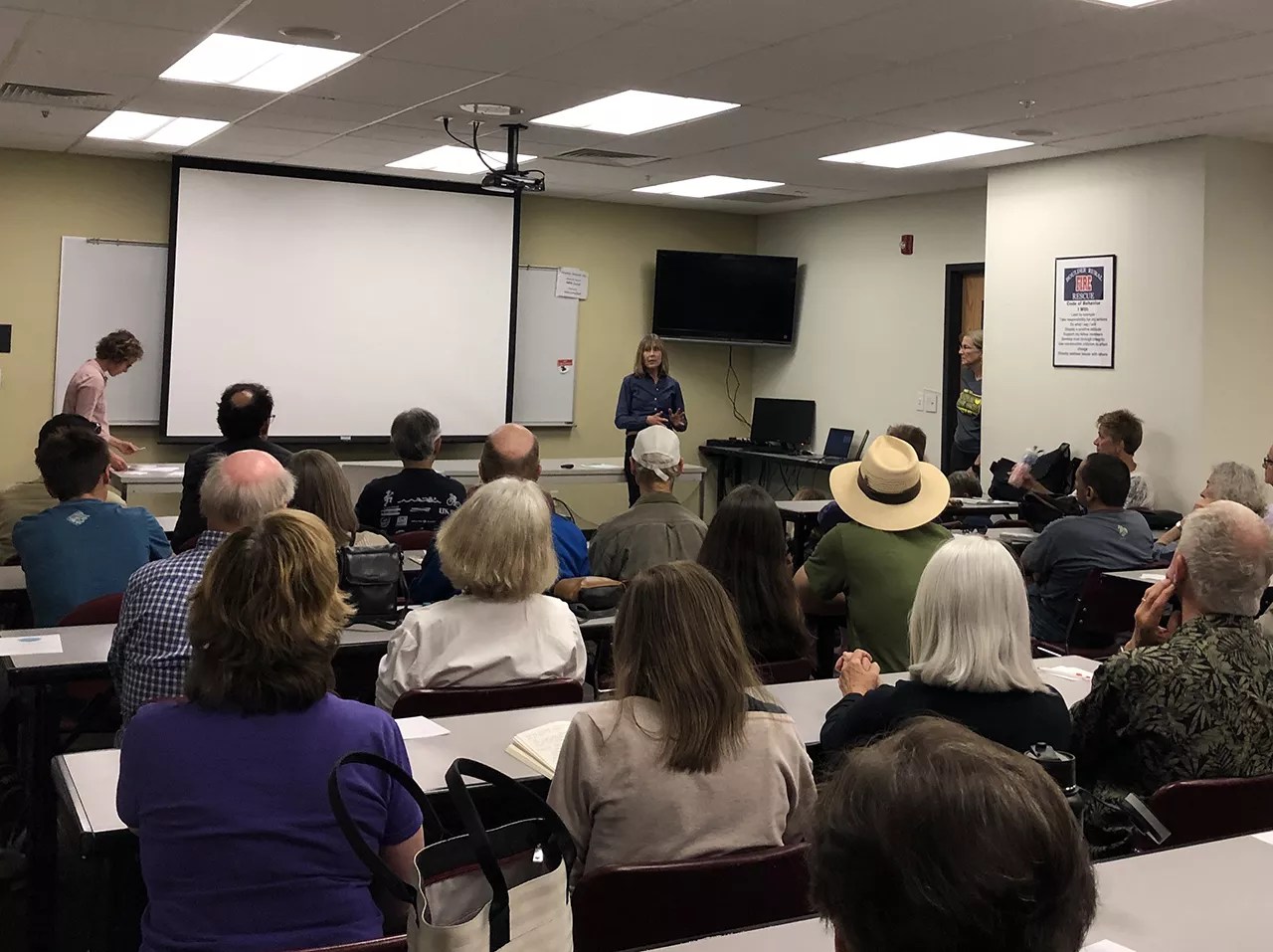 Dr. Maureen Barrett briefs east Boulder County residents on the results of her air-quality modeling study on Crestone’s drilling plan.
