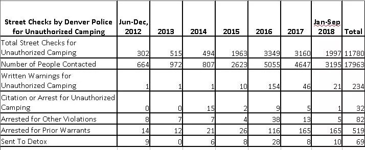 In light of these recent developments, Westword made a public-records request to obtain the latest camping-ban enforcement statistics from the city’s Department of Public Safety.