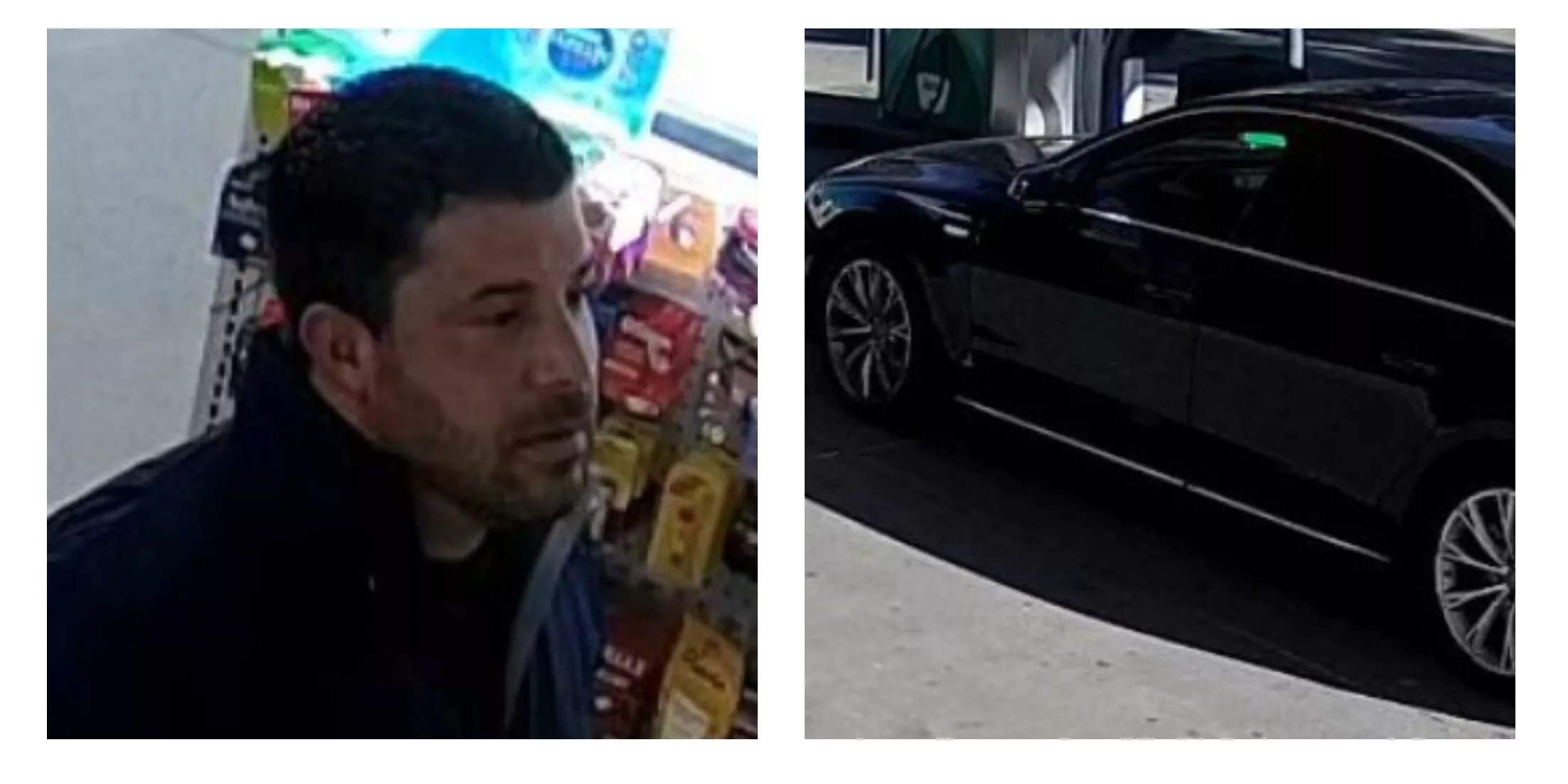 Another angle on the suspect and a look at the blue Audi in which he fled.