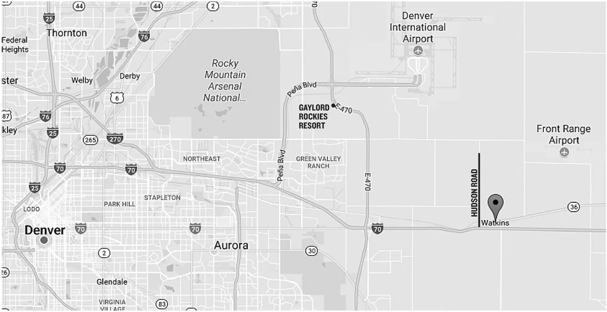 In 2007, Aurora purchased 1,300 acres of land just east of Hudson Road and north of I-70 for $10 million, according to records from the Adams County Assessor’s Office. There are no homes on the land, and the plots are outside the parameters of the half-mile buffer zone that was written into Mounier’s ballot initiative — even though some homes in unincorporated Adams County, of which Watkins is a part, sit just across the street.