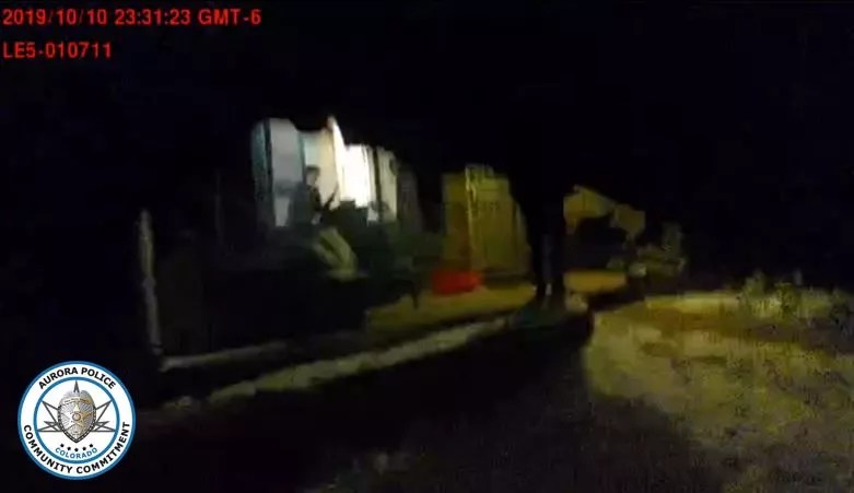 The Aurora Police Department released this body-cam footage showing Huff holding a shotgun.