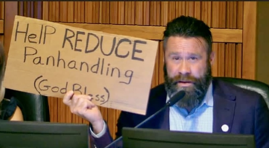 “Visiting with residents in our area, they don’t want to see aggressive panhandling on our streets,” he says. “It can be dangerous with someone on a very narrow median or walking in between cars. That’s feedback I’ve received.”