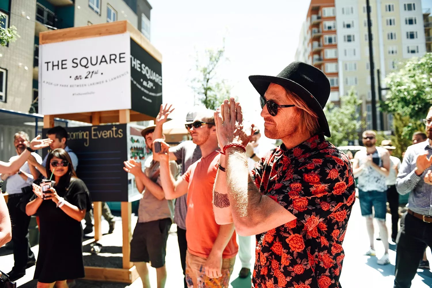 Lately, though, the neighborhood has been re-energized, with a push to create a business improvement district. And now it looks like the area has a hit with The Square on 21st, a new summer pop-up park on 21st Street between Larimer and Lawrence streets. Through August 15, this urban oasis will be open from 7 a.m. to 11 p.m. (standard Denver park hours), with shaded seating areas, lawn games, food and beverage vendors, a performance space, an area for off-leash dogs and plenty of activities, including bike rides and a silent disco from 8 p.m. to midnight on Friday, June 16, following an appearance by Dinger, that mangy mascot who’ll hype tonight’s Rockies game.