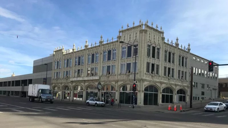 The unexpected source: The parking garage at the former Sports Authority flagship store, which has been known as the Sports Castle since it operated under the nameplate of Gart Sports. The building, which started life in the ’20s as an auto dealership, is a local landmark, though it does not have official historic designation.