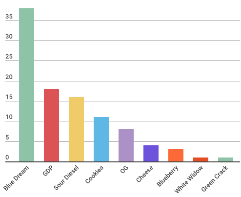 “Let’s smoke” was twice as popular as any other term, and Blue Dream had almost double the mentions of any other strain. Here’s the breakdown: