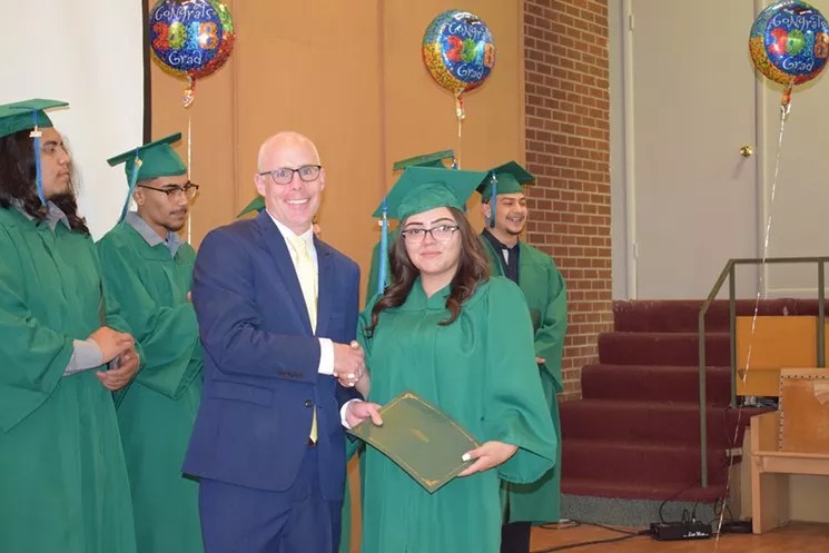 Lucas Ketzer and RiseUp graduate Sherri Villalobos during graduation ceremonies in May.