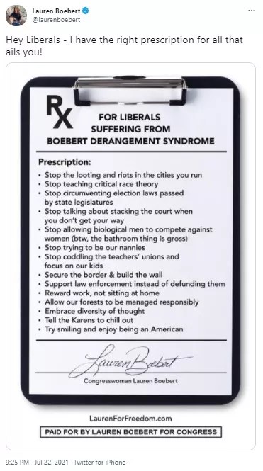 Leave it to Boebert to complain about politicizing important issues while politicizing important issues.