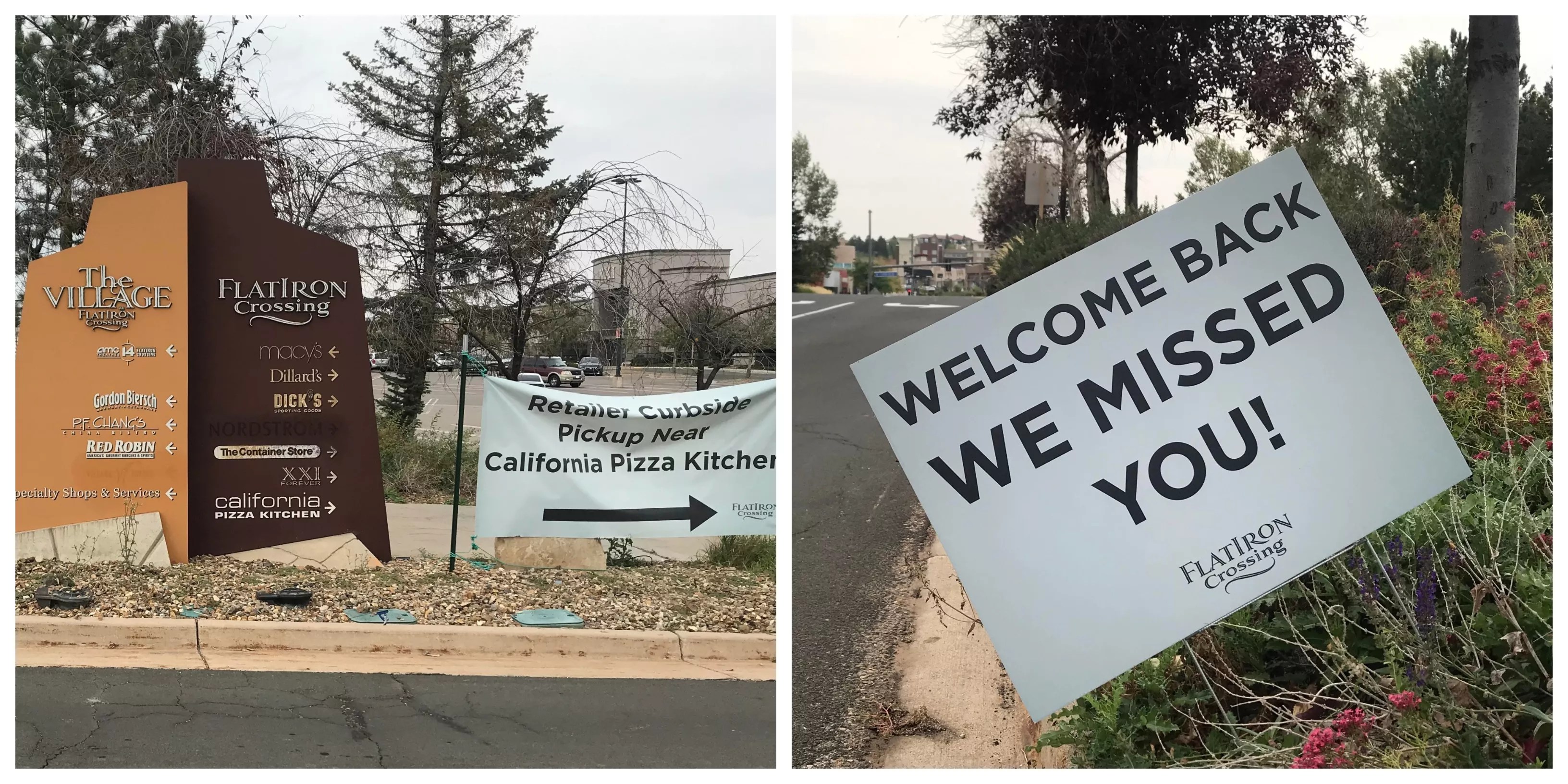 On September 26, the FlatIron Crossing parking lots were far from overflowing…but then, the weather had no doubt lured many potential shoppers into the great outdoors. Restaurants were the opposite of crowded, and there was no need for large department stores to monitor the number of customers entering, since there weren’t nearly enough to make proper social distancing an issue.