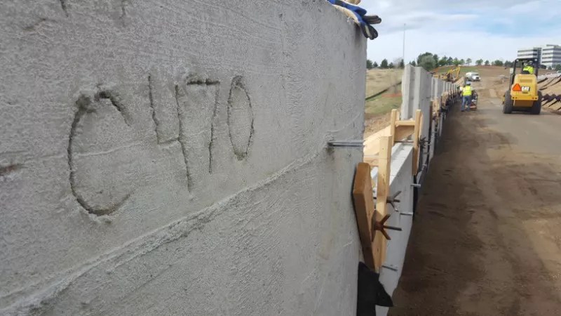 A retaining wall being readied for installation as part of the C-470 Express Lanes project.