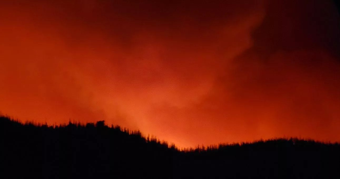 The nighttime sky over the Cameron Peak fire.