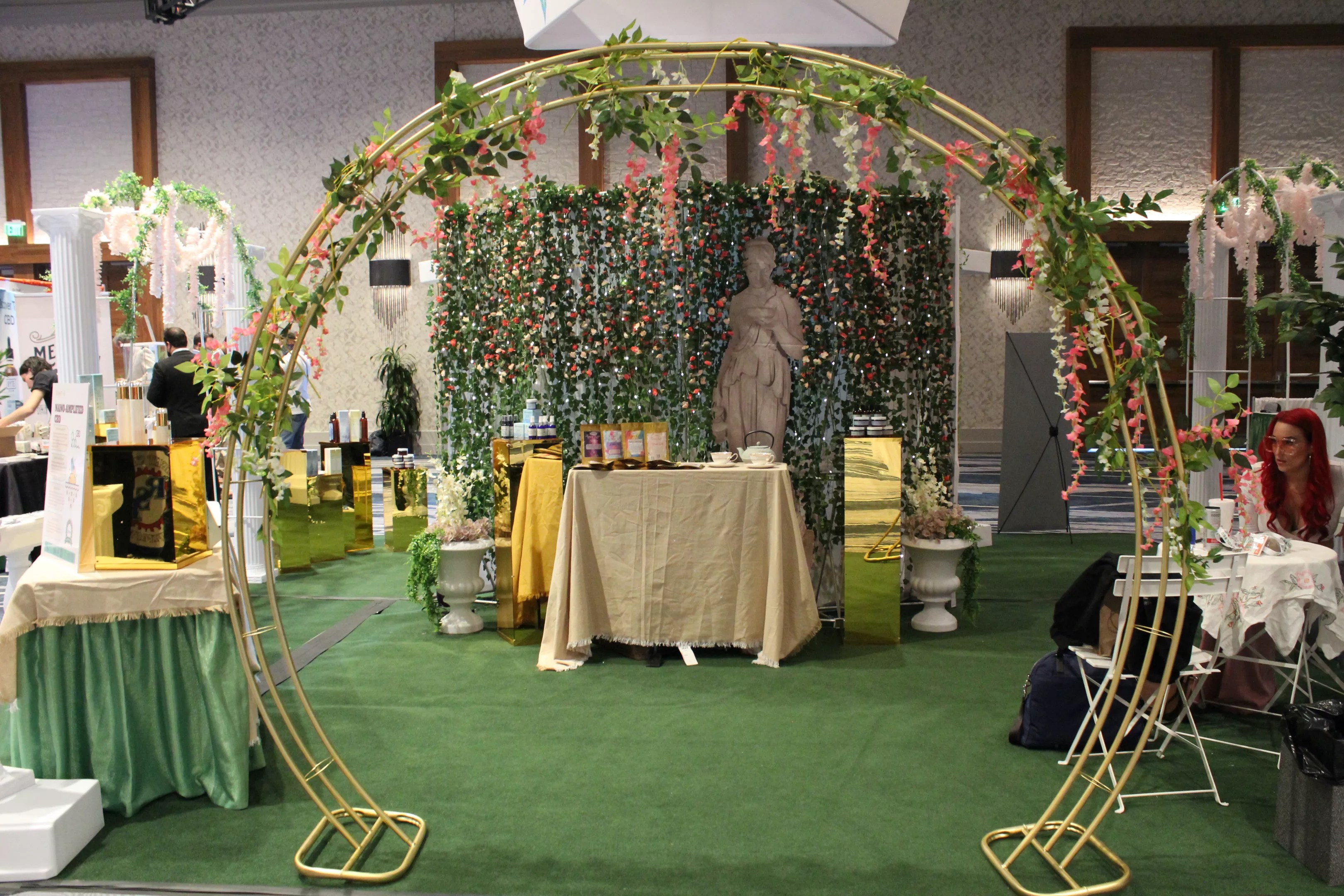 Infused into products ranging from food to cosmetics to pet food, CBD is now capable of filling conference halls with interesting vendors. The CBD Expo was sponsored by CBD cosmetic brand HempHera Kosmetikos, which created a Parthenon-esque exhibit of CBD beauty and wellness products scattered around foliage; it was the first thing attendees saw before mandatory temperature checks upon entry.