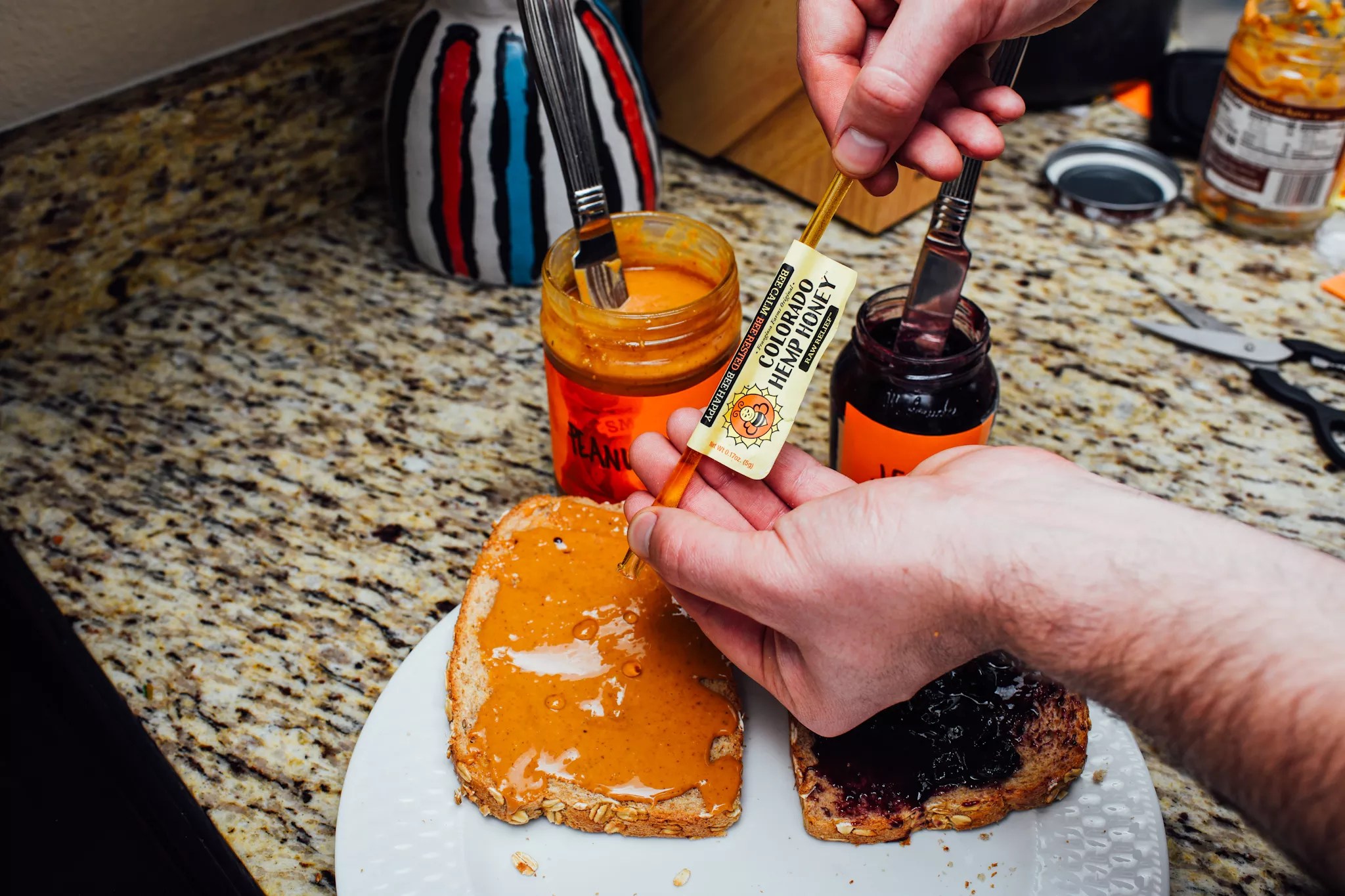 Once your peanut butter is the right consistency, slab that gooey stuff over a slice of bread, add some hemp-infused honey for sweetness, and bring on the jelly. Enjoy!